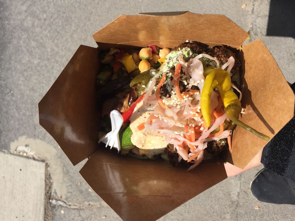 I'm never disappointed when I go for lunch at Soom Soom! The felafel is amazing! Vegan options include the felafel sandwich, felafel bowl, and more. If you are unsure about vegan/vegetarian options, be sure to ask as they are very knowledgable and friendly.
