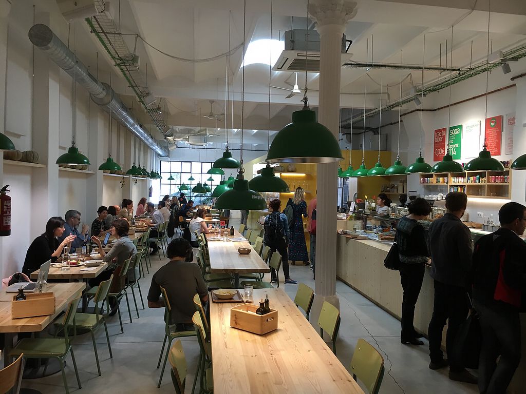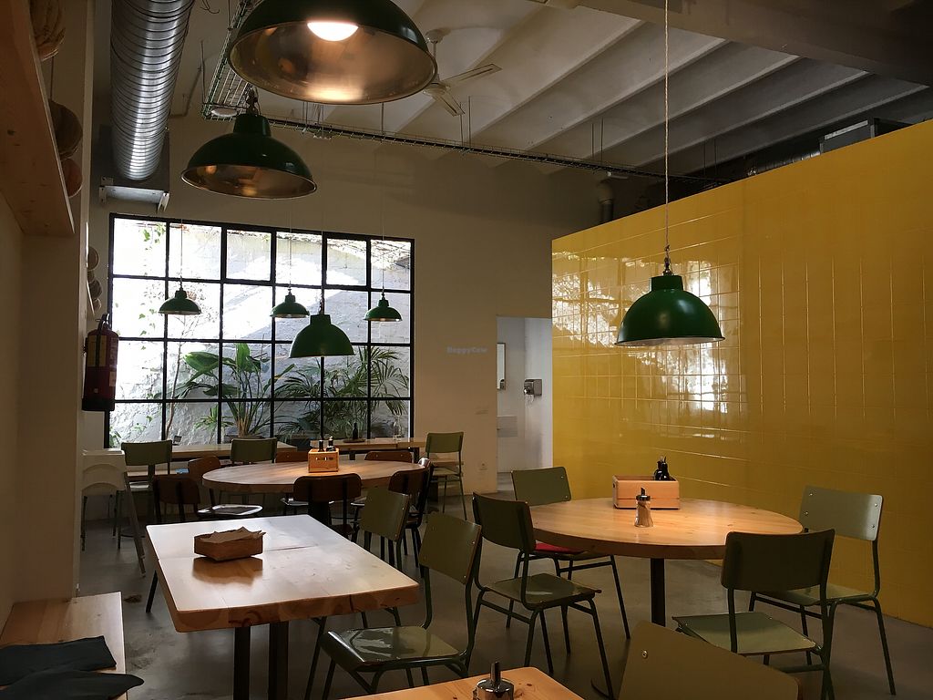 A cosy canteen with vegetarian and vegan meals. They offer 3 main meals daily, some appetizers/snacks, sweets and free purified water. I had a delicious big salad with raw algae and sesami dip. The dip is served separately and you can refill.😄I noted that they have 2 locations in Barcelona and the prices are decent. I highly recommend it!