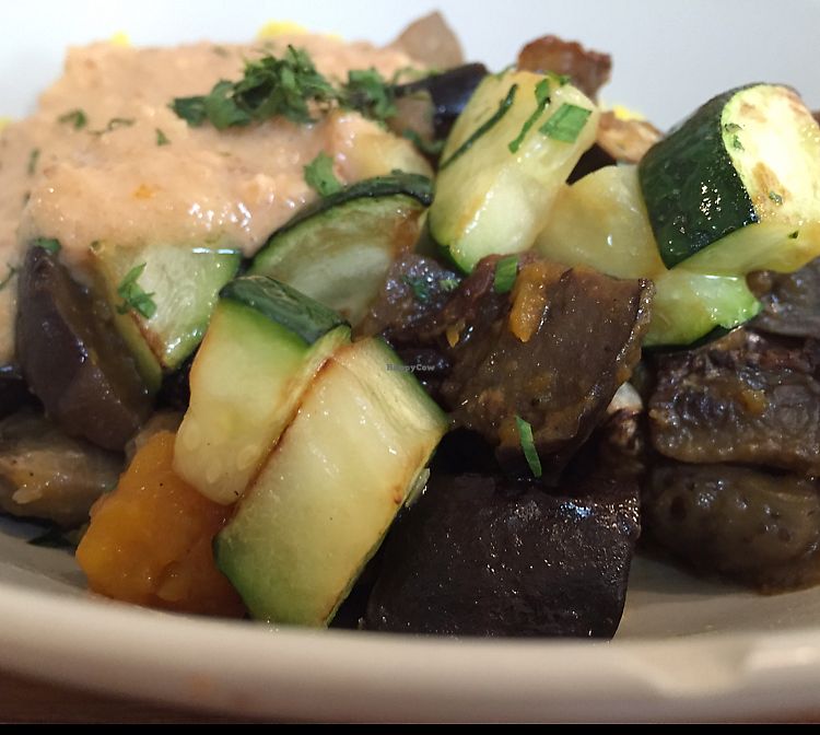 Beautiful place. A two course meal of soup and main including filtered water is only €10.50. A glass of organic wine is a paltry €2.10. We had the pumpkin and rosemary and carrot and ginger soups. They'd ran out of miso soup. I was pretty gutted. For the mains we had a chunky Senegalese aubergine and courgette stew with peanut sauce and tempeh balls on a sweet and sour pineapple sauce. Both wonderful. As I said earlier, beautiful place.