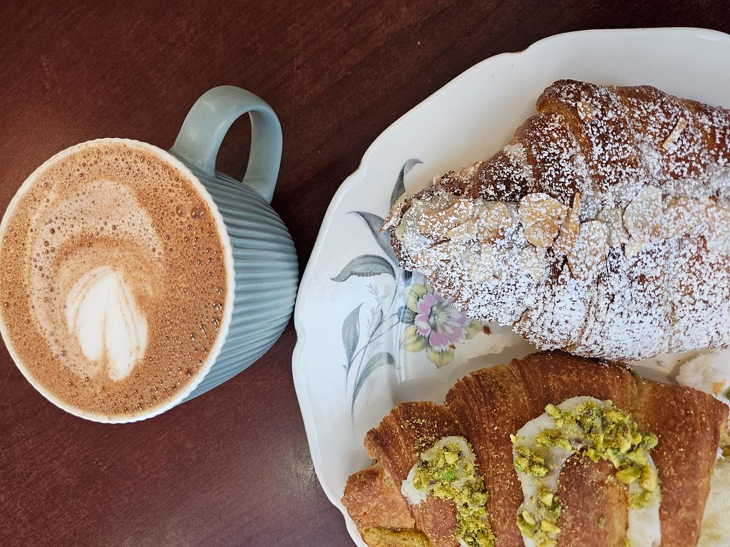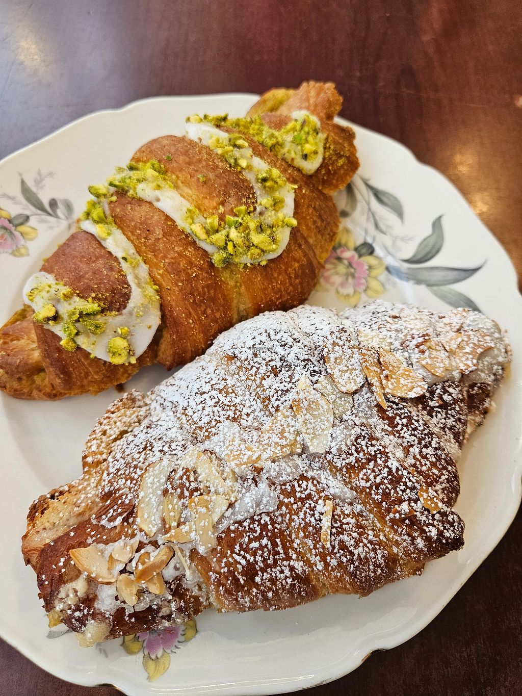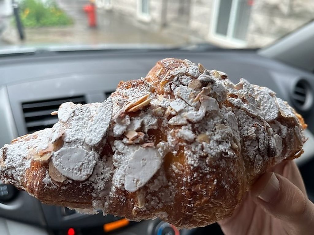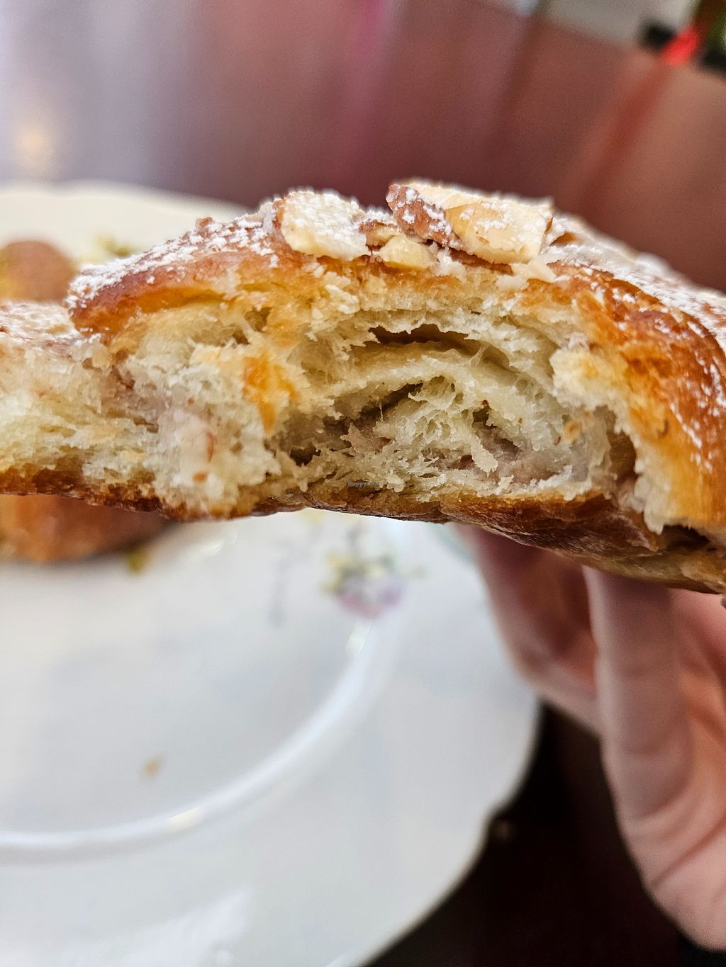 Close-up of the almond croissant (tore slightly when I picked it up, w…