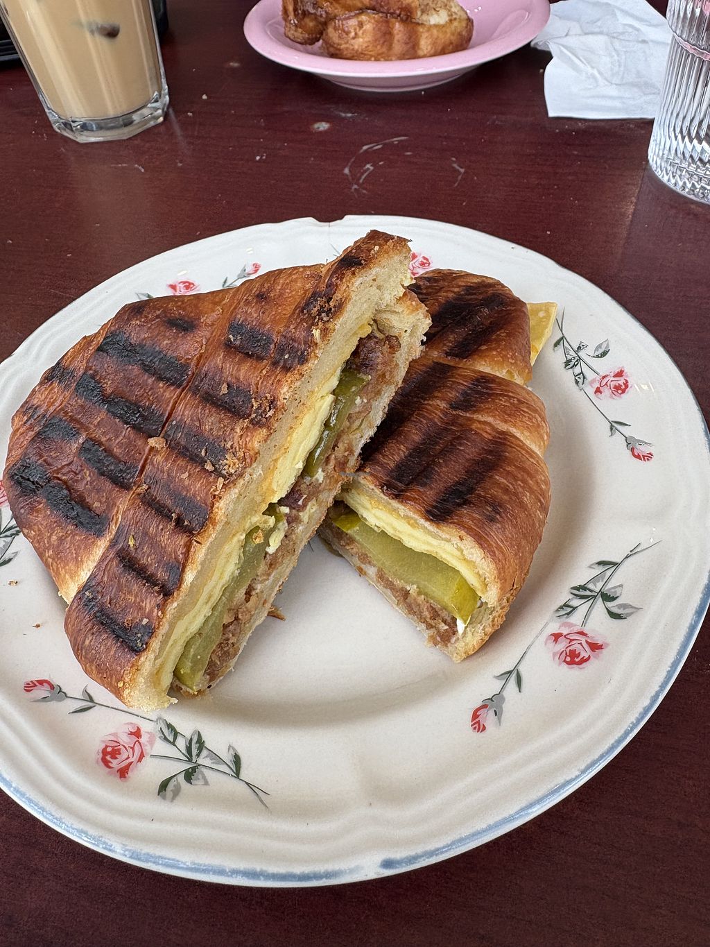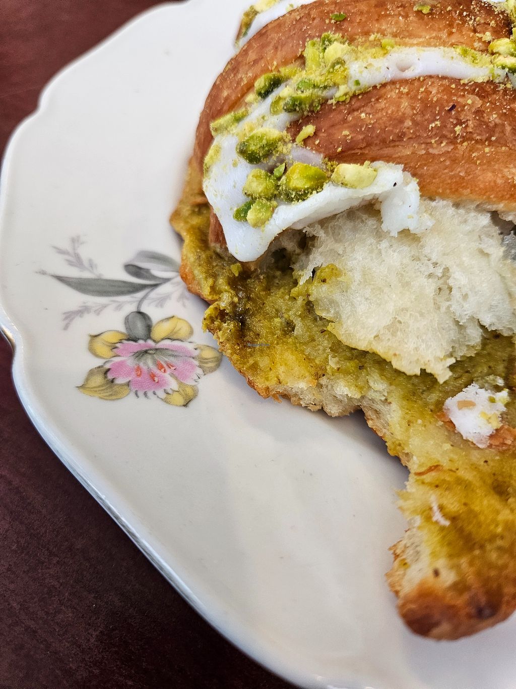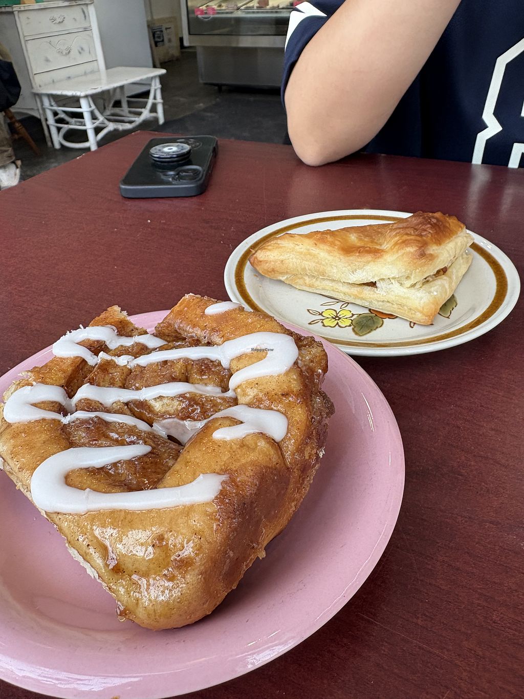 Close-up of the almond croissant (tore slightly when I picked it up, w…