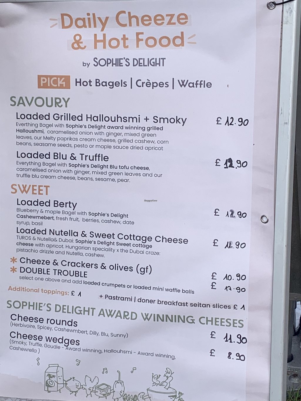 Great range of savoury and sweet cheese-based dishes. Including crepes, bagels and waffles with cheese toppings