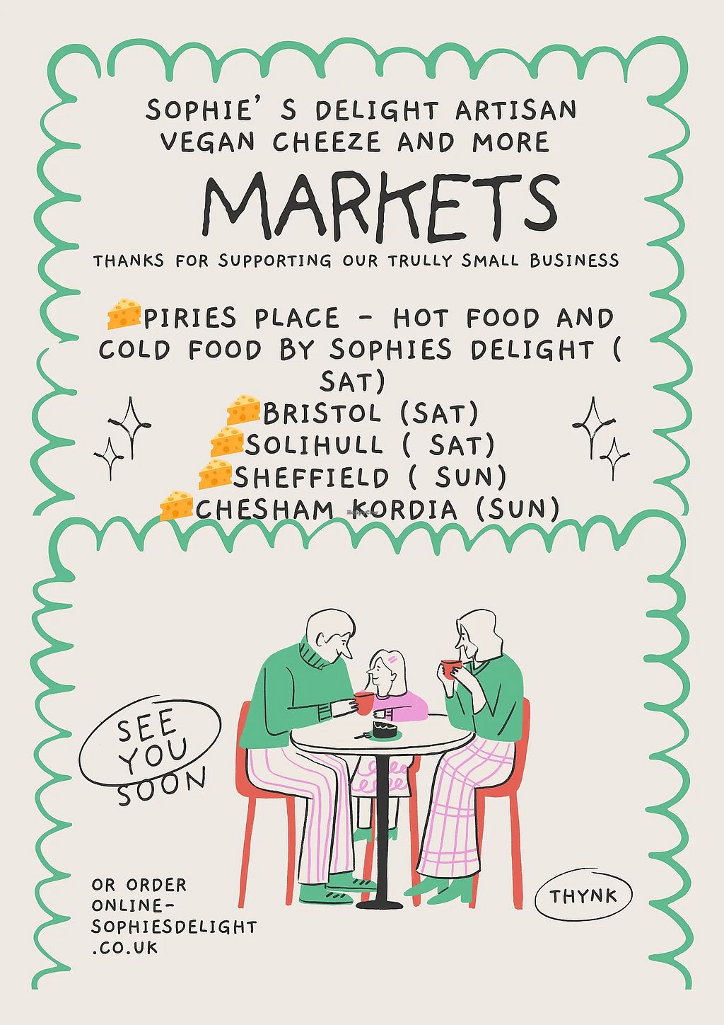 Market stall that moves around and sells all kinds of vegan, raw, gluten-free and sugar-free cheeses (solids, spreads). Also delivers. Open Sat 11:00-17:30, Sun 10:00-18:00. Hours and location vary, please check website or social media to confirm information.