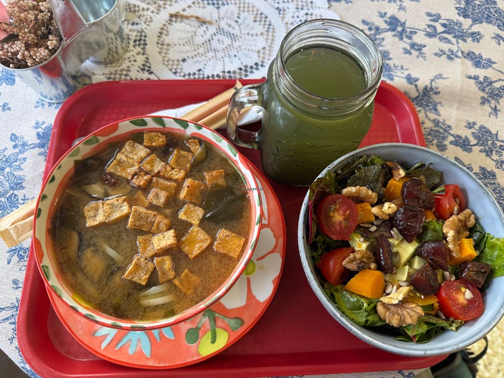 Lovely Miso and Noodle Soup with salad and drink. Set Meal