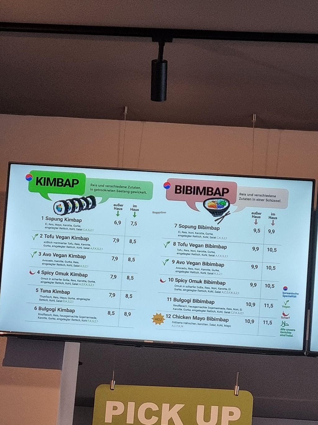Ein süßer kleiner Laden mit sehr nettem Personal und einer kleinen veganen (gekennzeichnet) Auswahl an Kimbap und Bibimbap. Uns schmeckt es sehr und kommen gerne dorthin. Achat, und gechillter koreanischer R&B darf natürlich nicht fehlen. :)