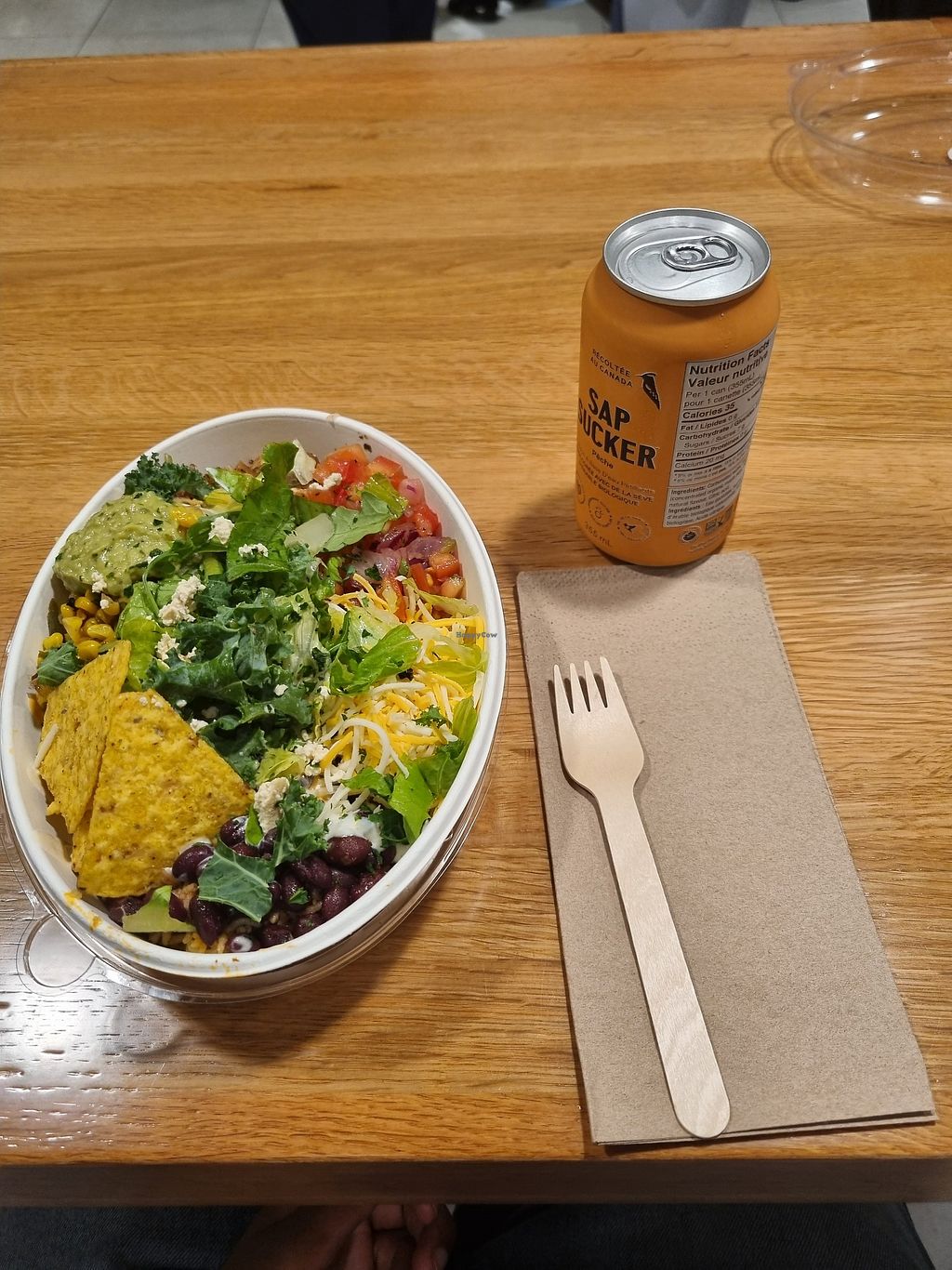 Chipotle bowl w. Chicken and peach flav. soda (that is more like a "bu…