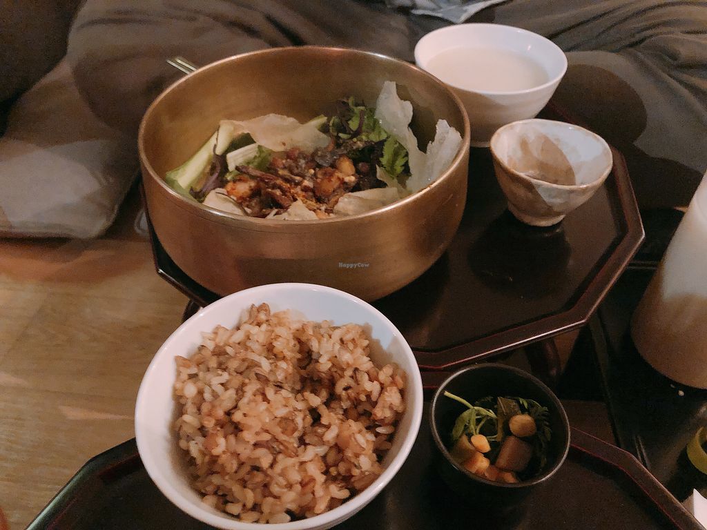 Meal setting on traditional table called as soban 전통식 소반에 내온 상차림