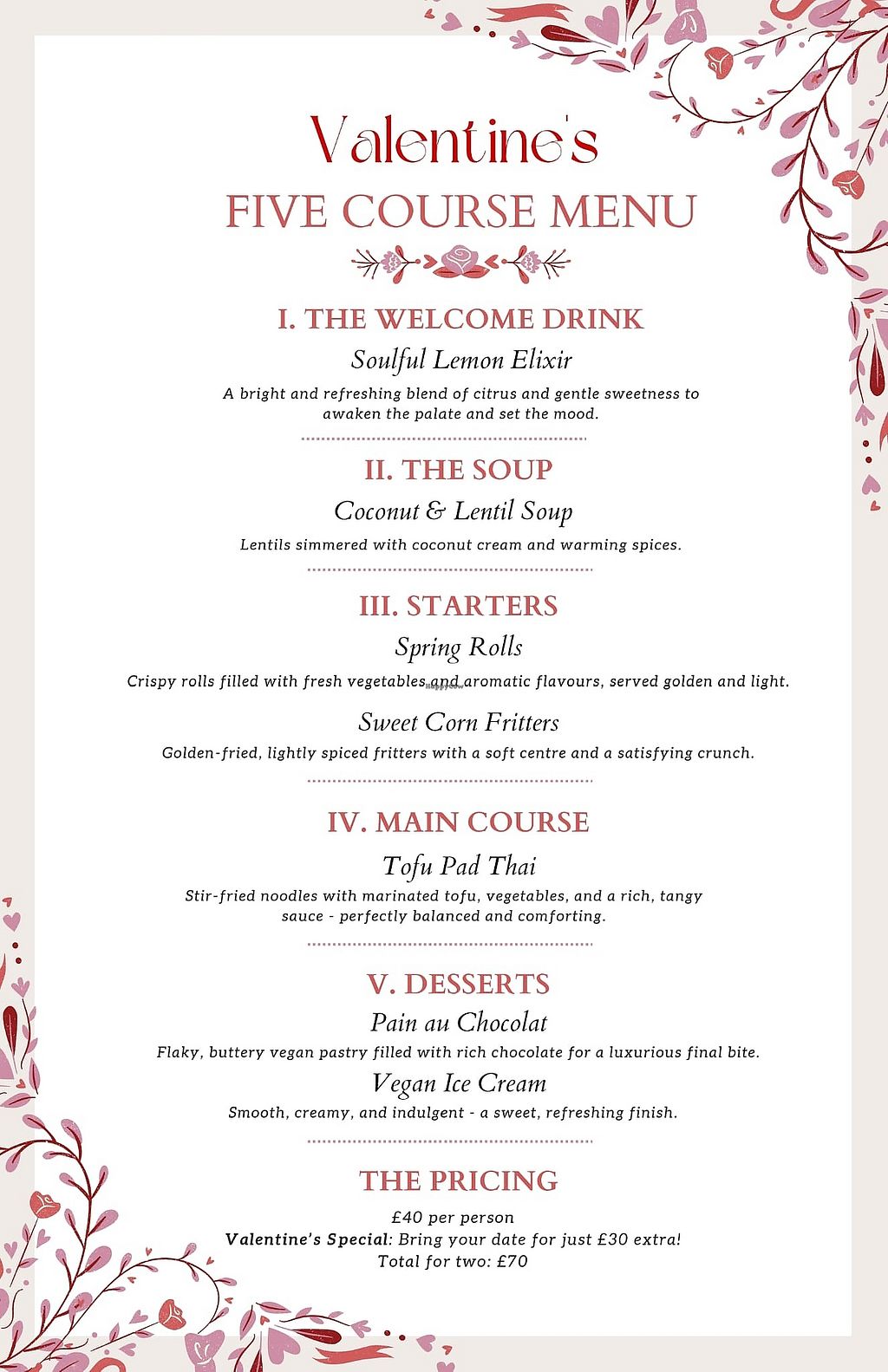 ✨ 5 course vegan special for Valentine 💝 📆 Offer £ 40 pp , Brin…