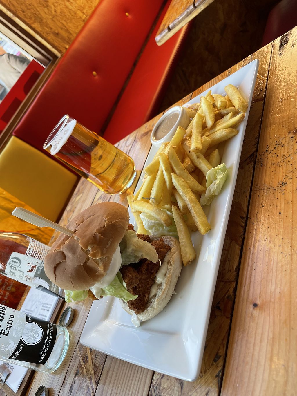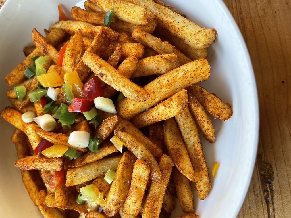 This restaurant does do a lot of flesh, so by no means a vegan place. But the Irie Irie curry was really delicious and not too spicy (maybe medium hot?). My husband had chick burger and fries which was ok. He thought the fries might have been fried with everything else. Service is relaxed but if you are in no hurry, pick a window seat and watch the street outside.