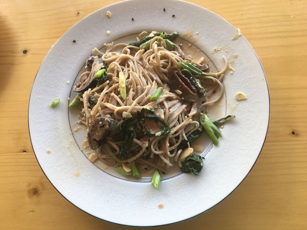 buckwheat noodles with miso and mushrooms