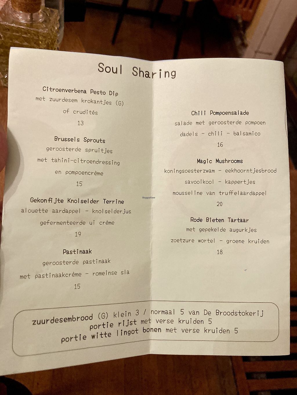 We hebben een geweldige avond gehad in Soul Kitchen! Het shared dining concept was geweldig, want zo konden we van alle heerlijke gerechtjes proeven. We waren met 3 en bestelden 4 hartige gerechten met een portie brood. We zaten eigenlijk al vol, maar de dessertkaart was onweerstaanbaar dus we deelden er nog 2. Het was ook gezellig zitten, met zeer vriendelijke bediening. Een aanrader!