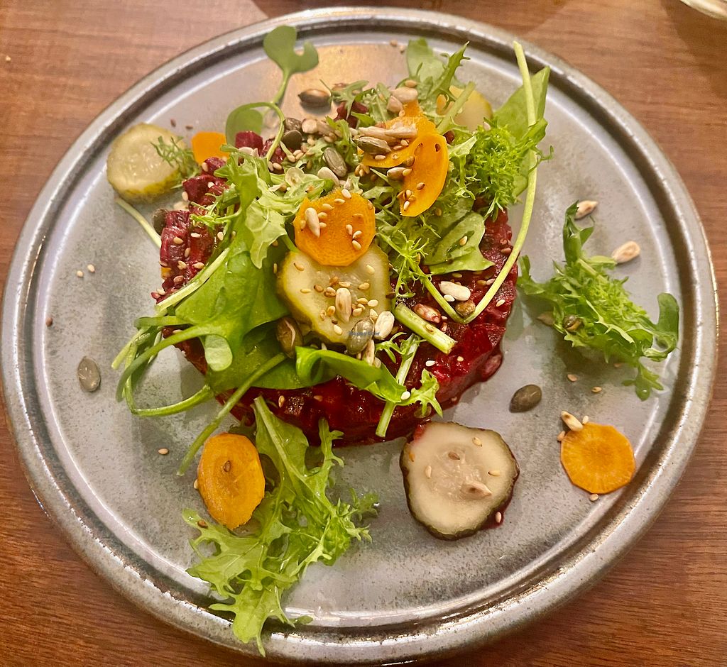 Great and original selection of plant based small dishes. The taste experience is top notch. The service is excellent, so much enthusiasm and passion. Great drinks too. Really cool to celebrate a special occasion.