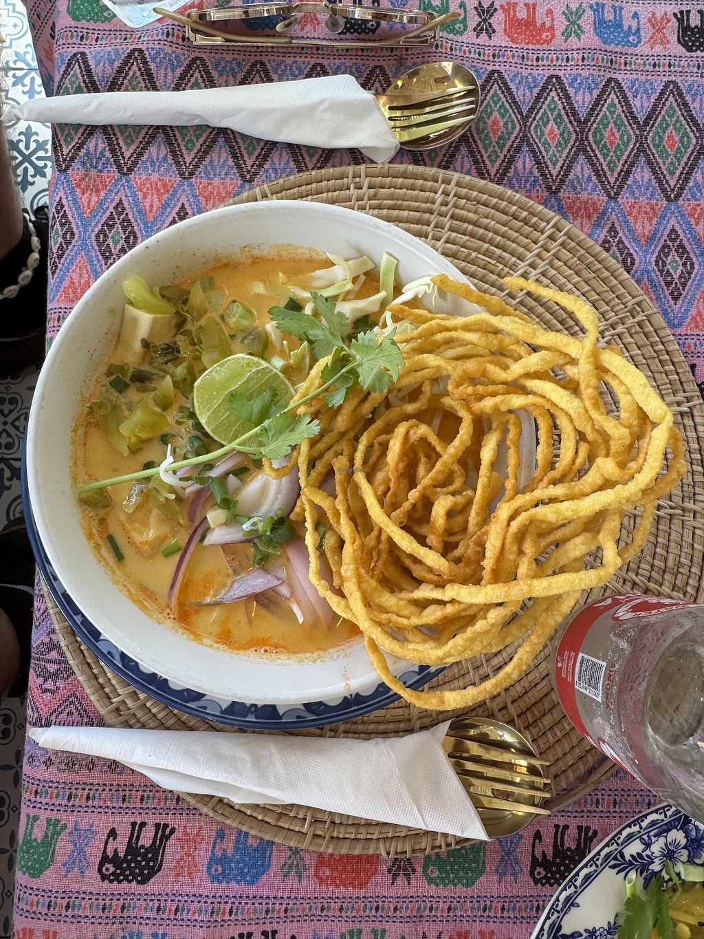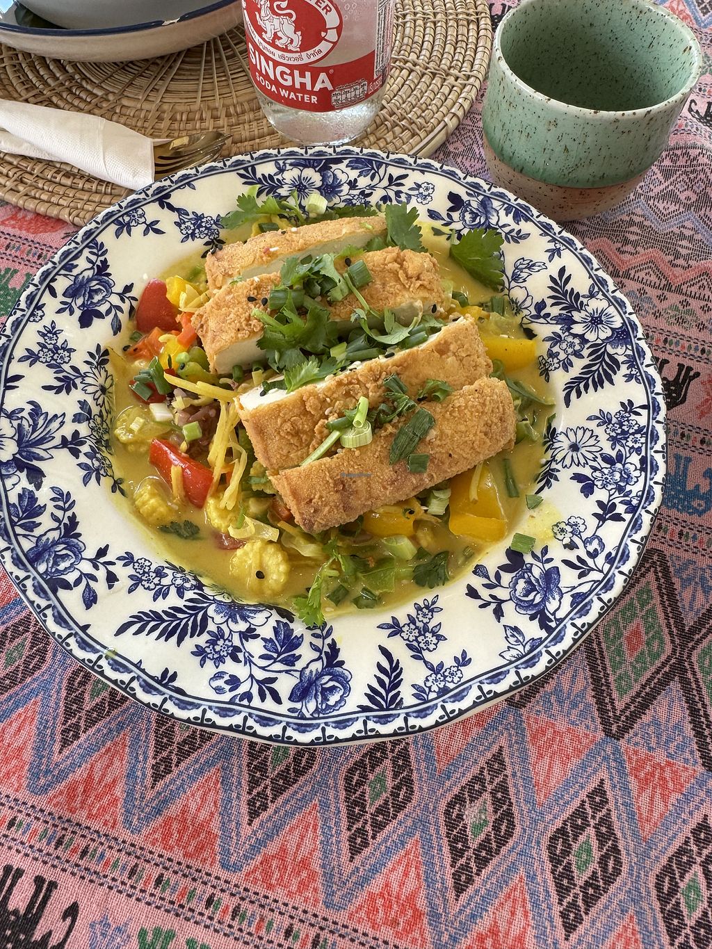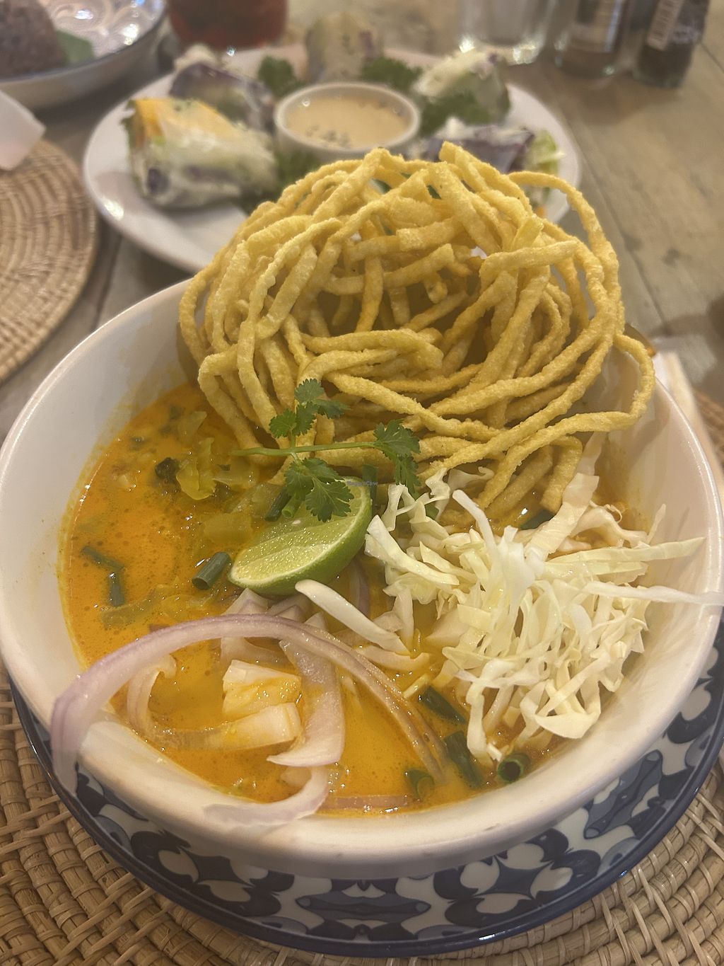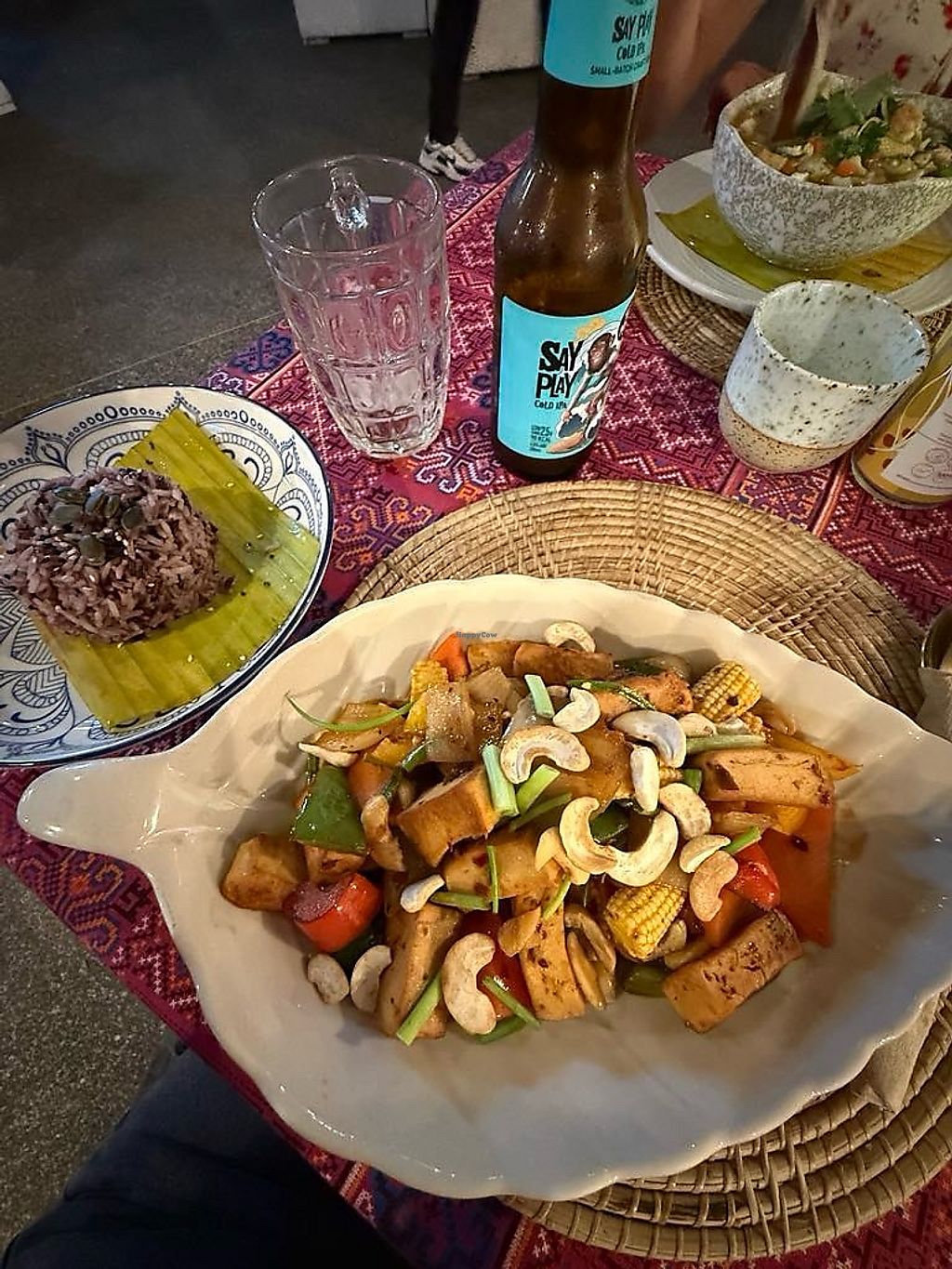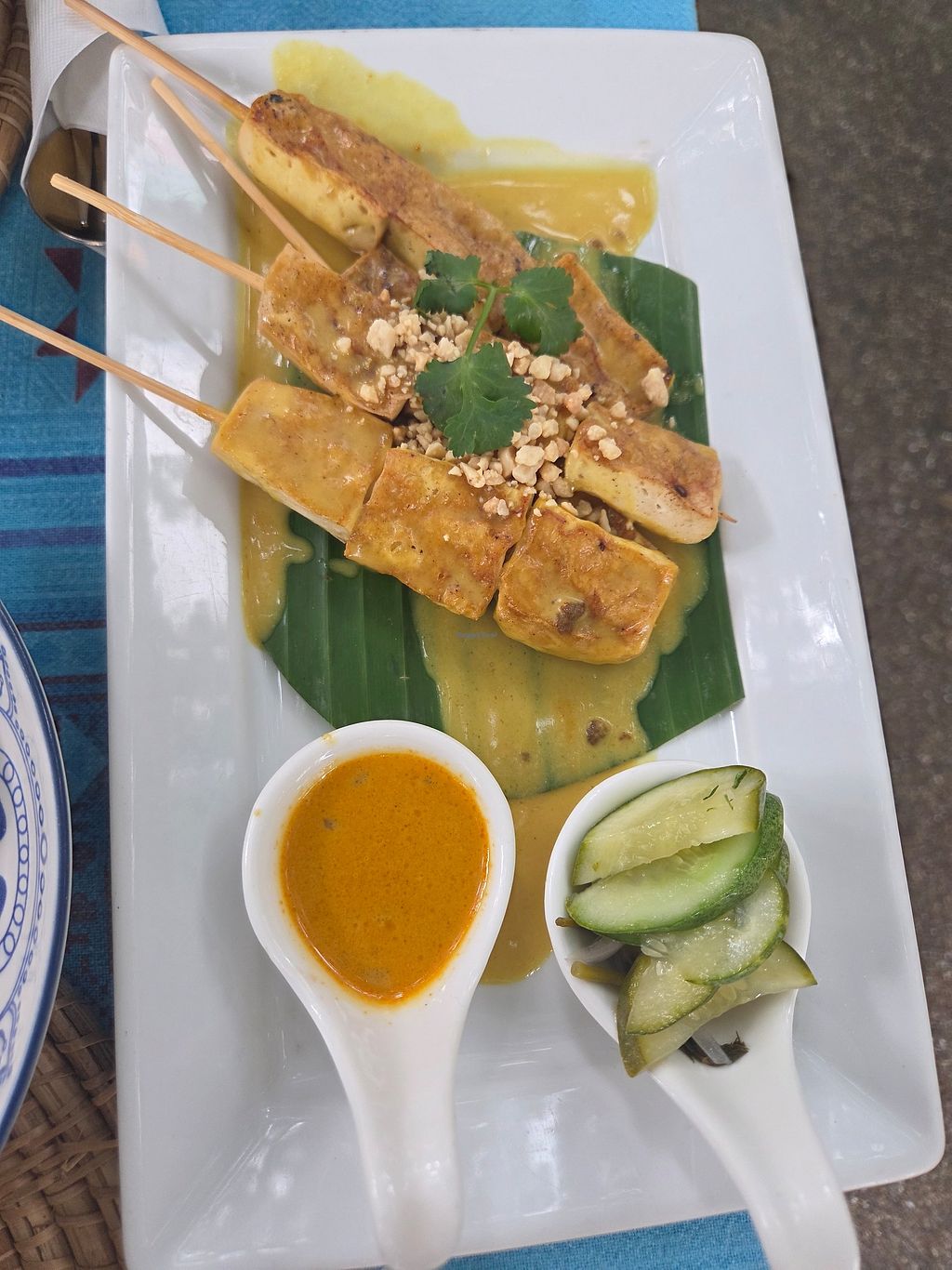 We had lunch here this afternoon and got nachos, curry and tofu satay. All very delicious. Excited to try other dishes while we are here.