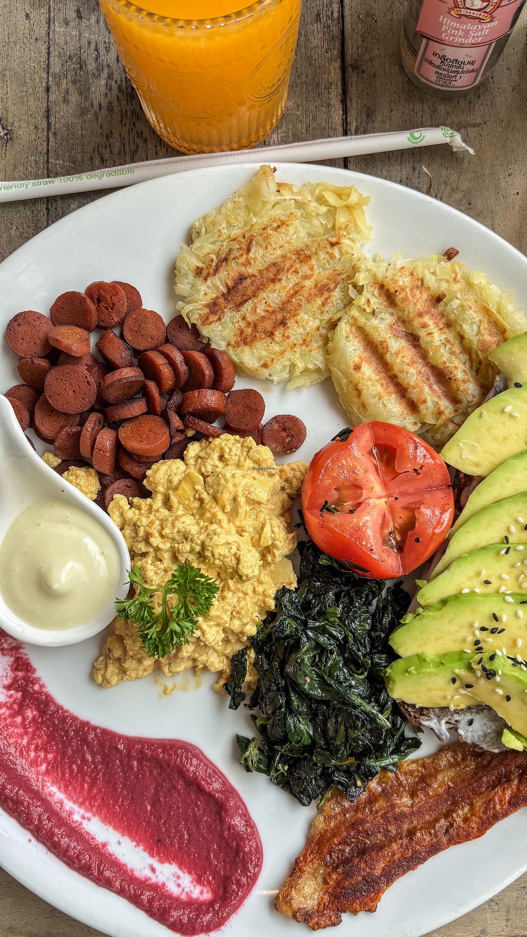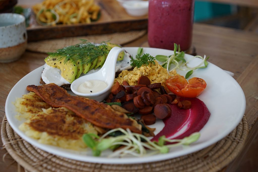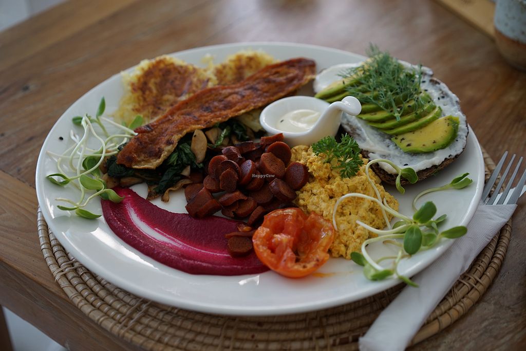 Fantastic place to grab some lunch or breakfast, a pretty big menu with many choices. The full vegan breakfast was pretty big, the coffees are great also, highly recommend. Not the cheapest though, but worth it!