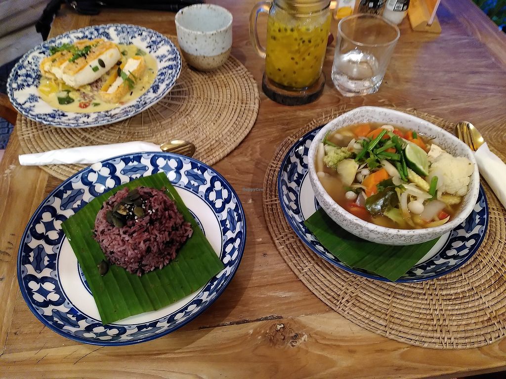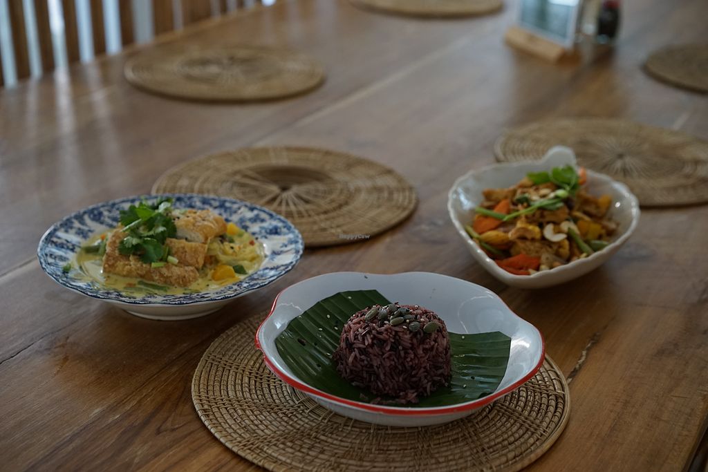 Restaurant offering food and cocktails. Thai and international cuisine with child-friendly options. Reported fully vegan October 2022. Please note that payment by card includes a 3% surcharge. Open Mon-Sun 9:00am-9:00pm. Closed Mon.