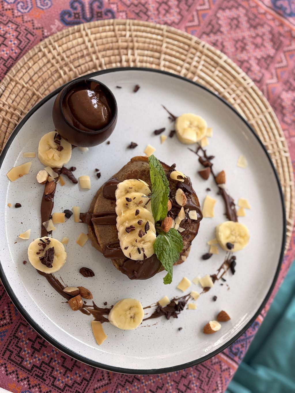 We've also had the chocolate banana pancakes, the hazelnut and chocolate icecream with peanut butter and Nutella sauce aaaand the mango cheesecake and the blueberry cheesecake. The icecream is up there with the creamiest most delicious vegan icecream weve had. The blueberry cheesecake was lush, but the mango one didn't match the picture - it was icy, so we wouldn't order that again.