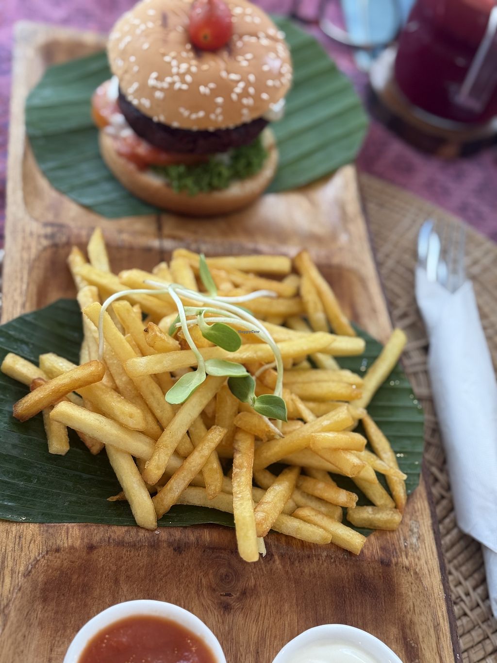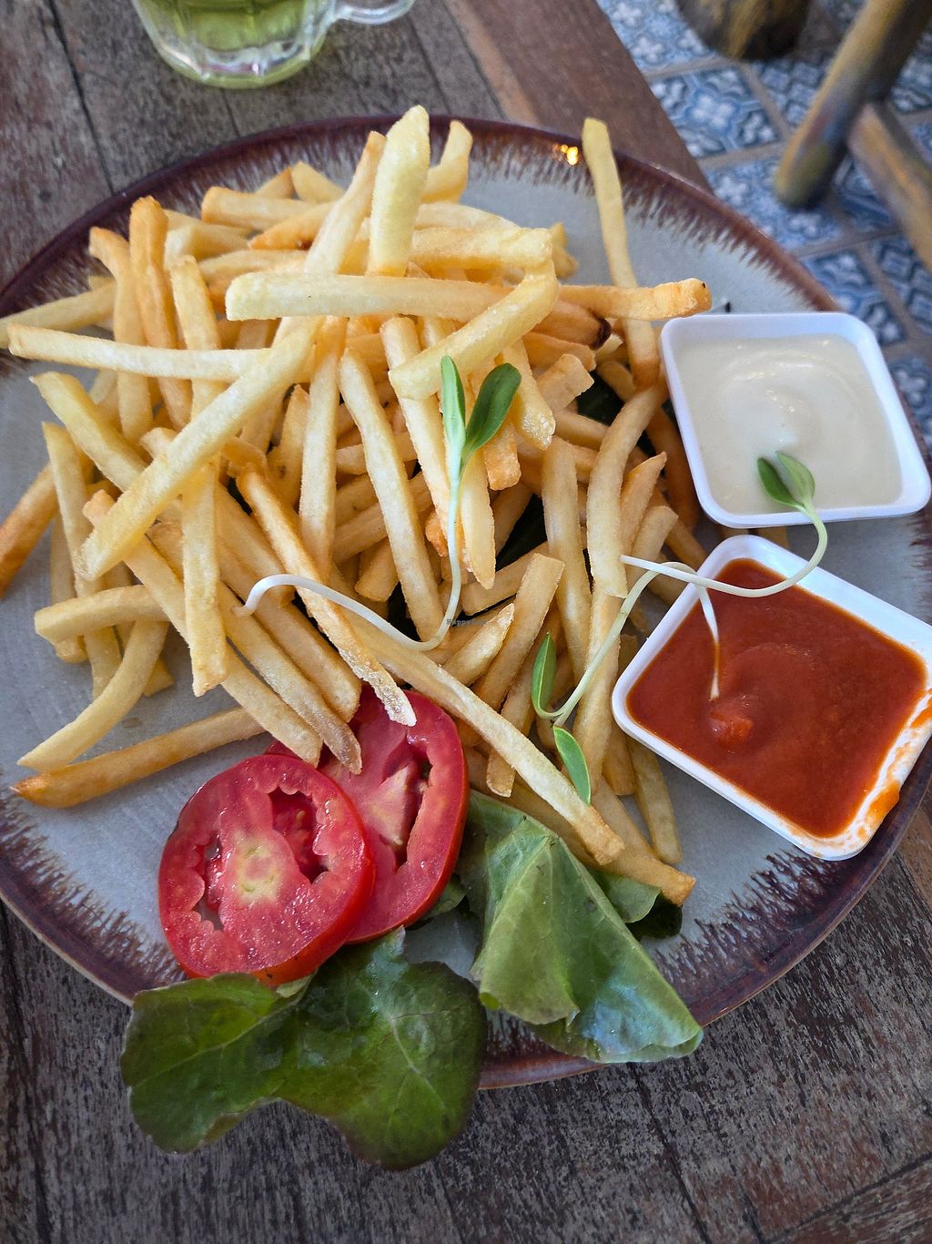 Like the food is great, the creme burlé, the vibe, the area, the food, the service the amount of options. If you are in this section of the island you must come here! There is also some merchandise to buy, all very affordable and beautiful.