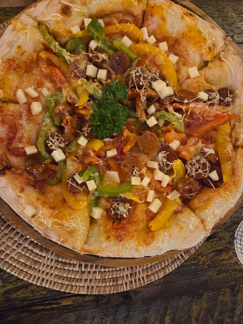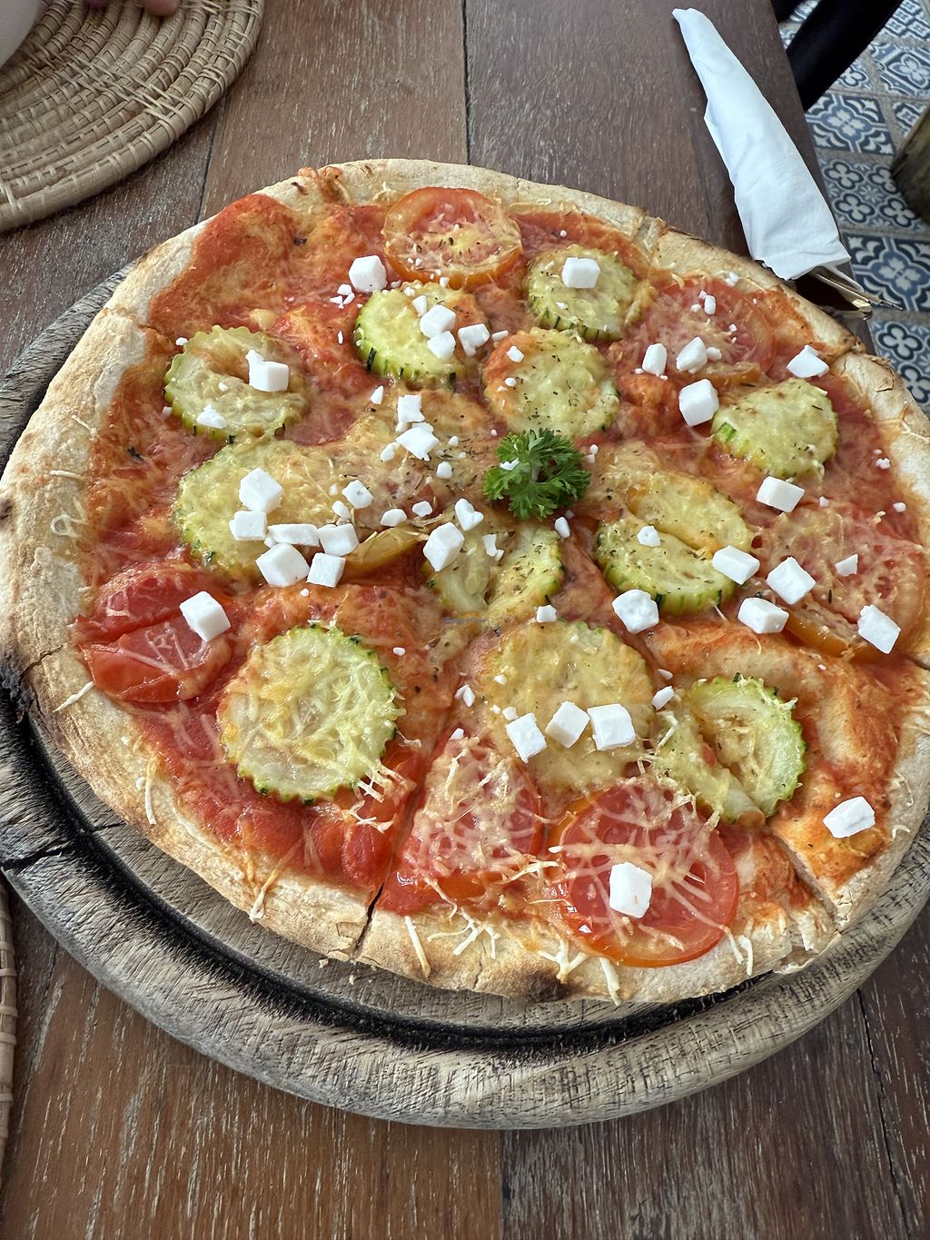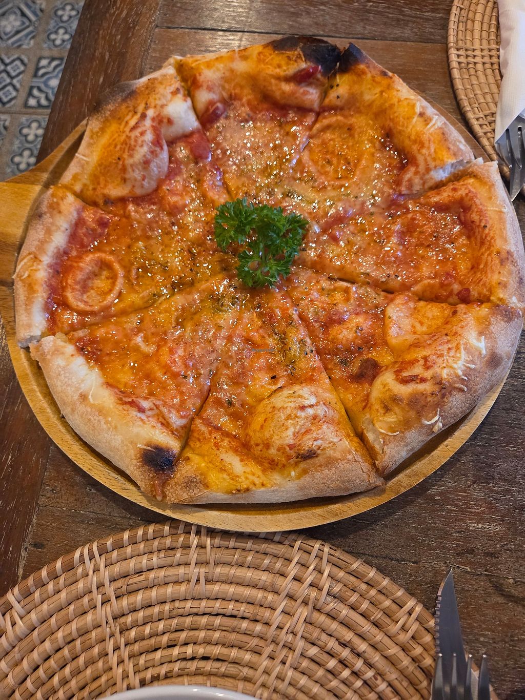 Loved the laid-back atmosphere and beachy feel of the restaurant. The pizza was pretty average, but the real standouts were the two salads and the drinks — both were super fresh, flavorful, and beautifully presented. The lemongrass soup was also quite good! I’d definitely come back just for those salads alone — so refreshing and delicious.
