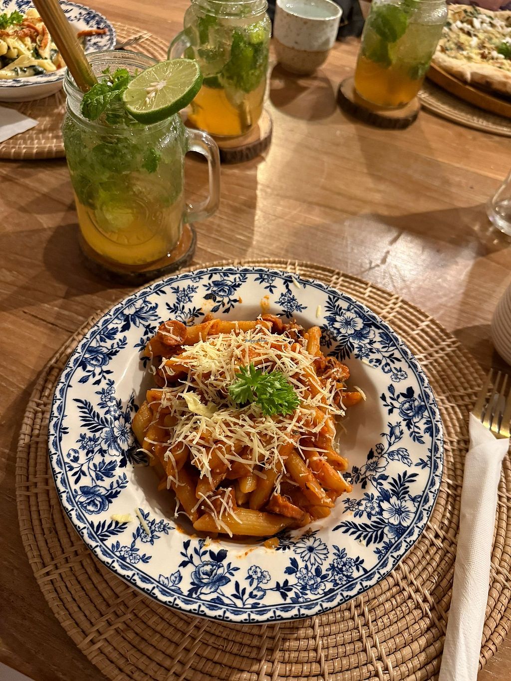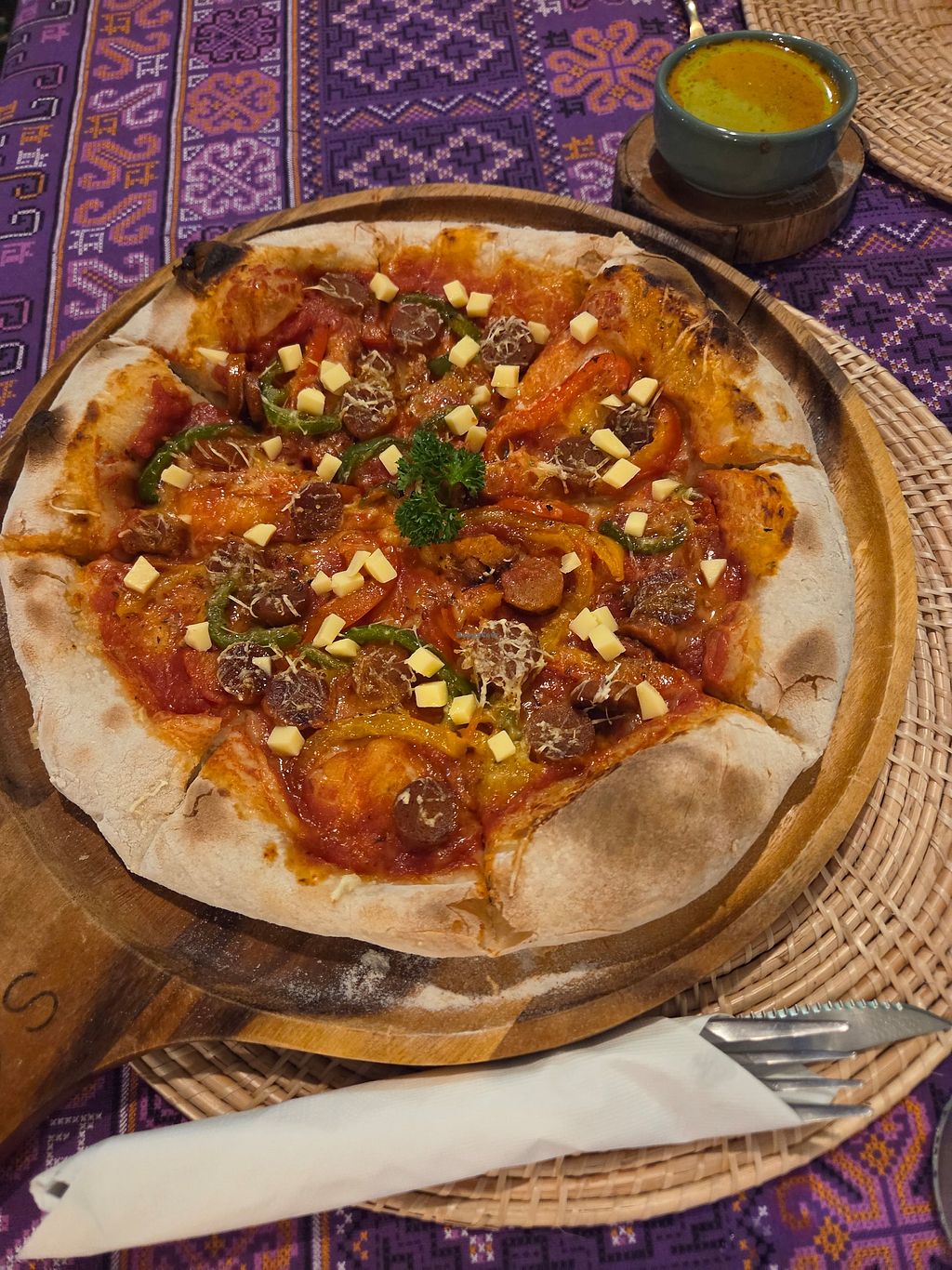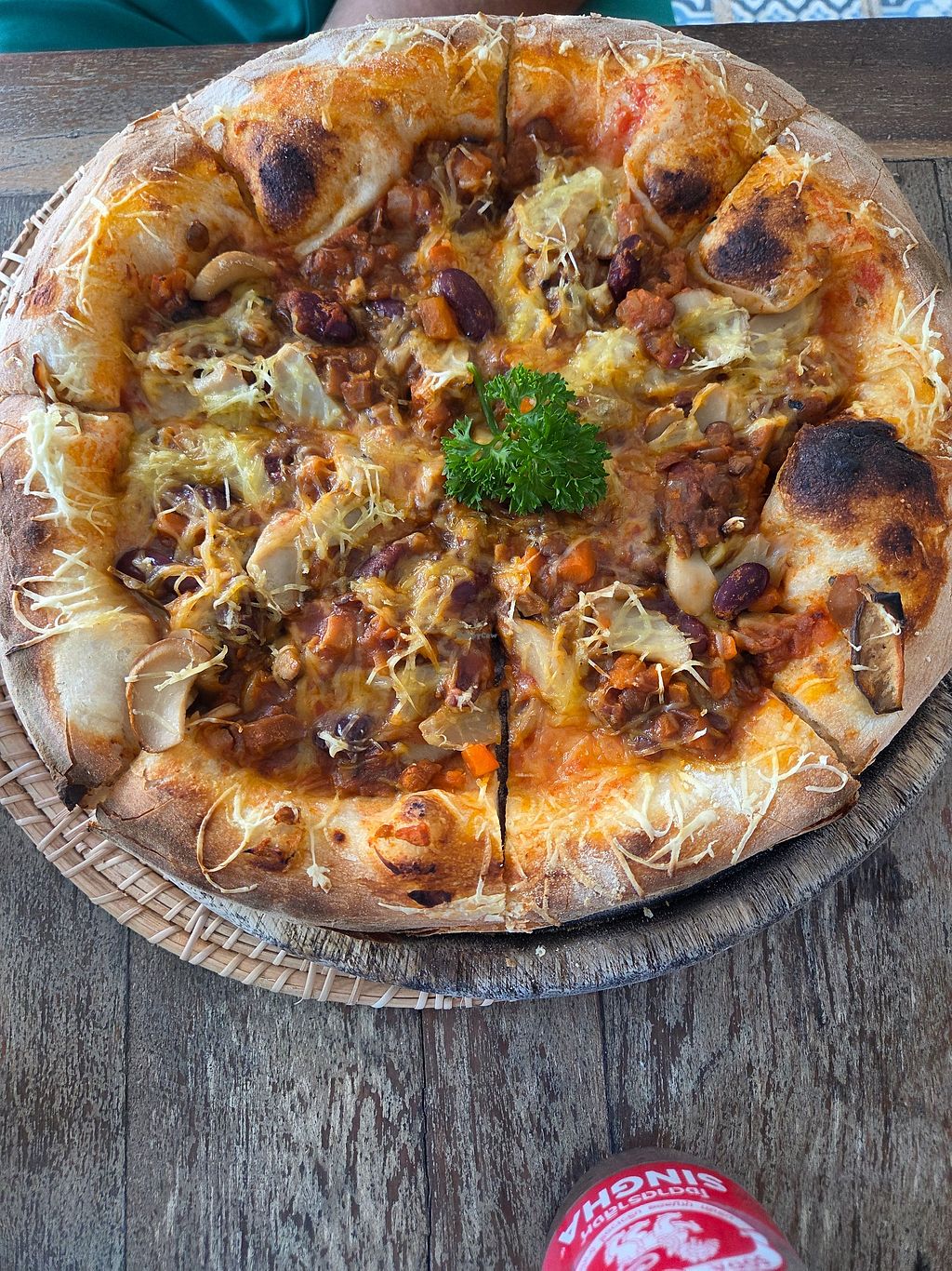 Loved the laid-back atmosphere and beachy feel of the restaurant. The pizza was pretty average, but the real standouts were the two salads and the drinks — both were super fresh, flavorful, and beautifully presented. The lemongrass soup was also quite good! I’d definitely come back just for those salads alone — so refreshing and delicious.