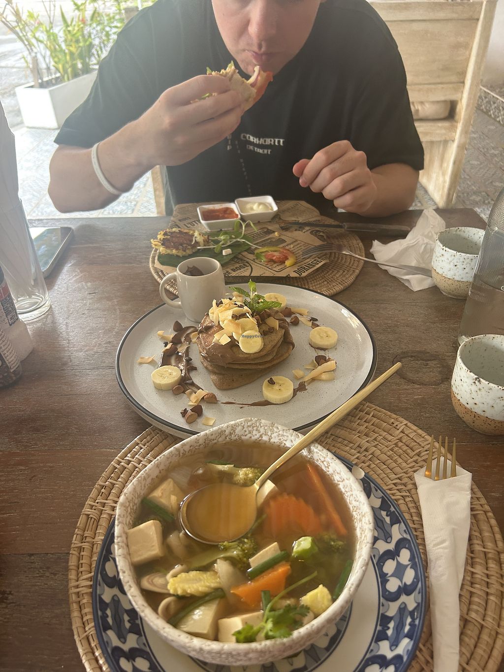 My partner and I love this place - delicious food, gorgeous atmosphere, kind staff (including taking good care of street dogs) and all vegan!