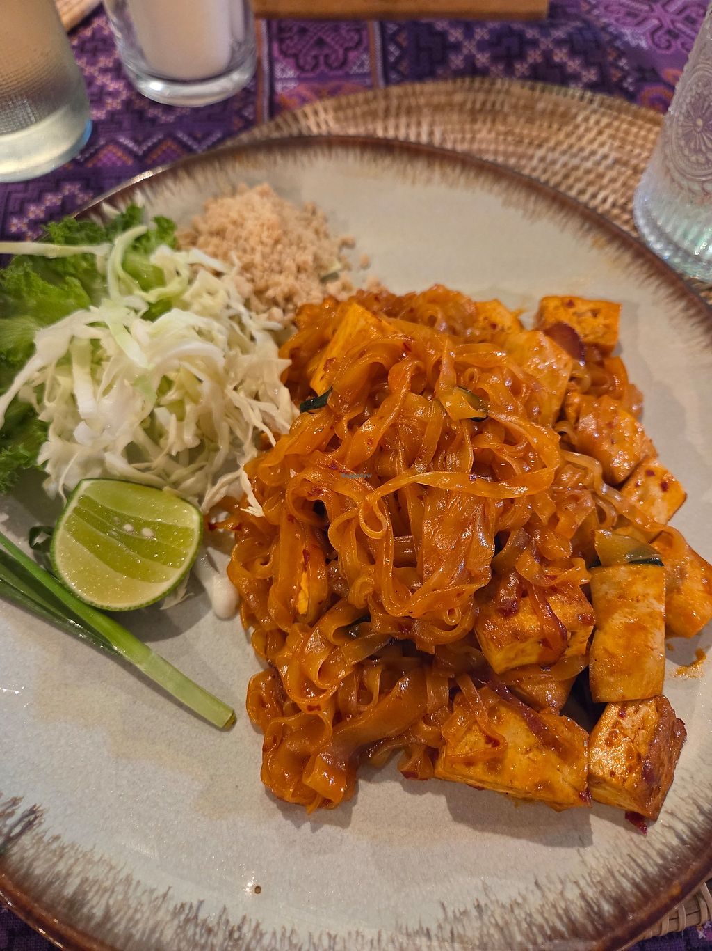 Beautiful sanctuary of the main street we enjoyed the green curr, mild pad Thai and the couscous ball salad with a beer and two soda drinks, raspberry and lime !