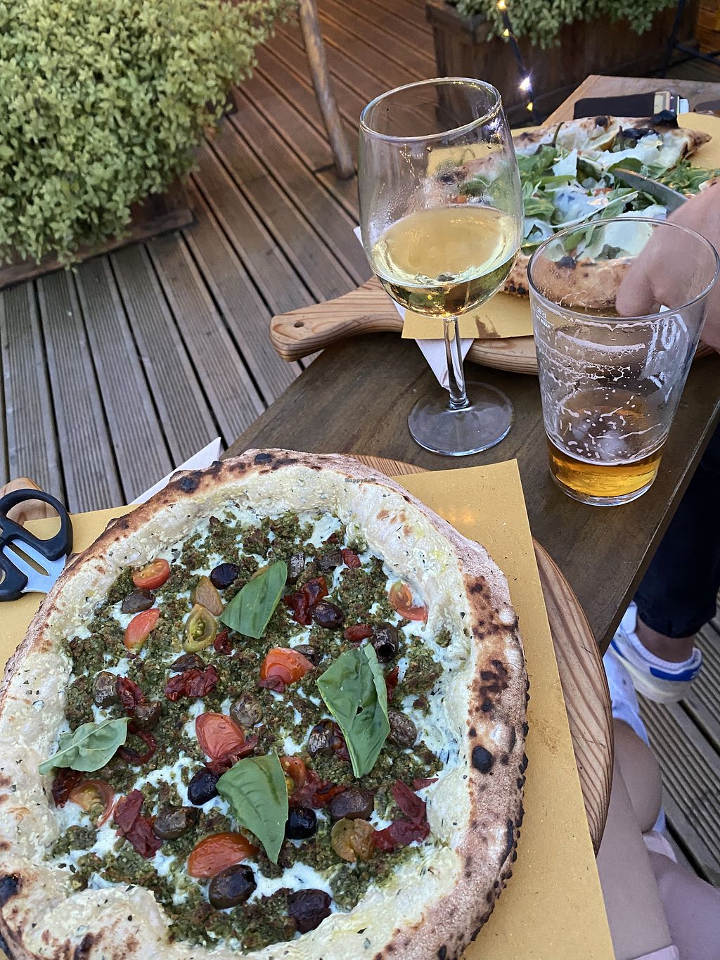 Simple, delicious, fresh, hot….yummy! Best pizza we ever had. The vegan 🌱 pesto pizza is a dream and the dough soooooo good. I love the scissors ✂️ which come with the pizza 🍕 to cut it - on a wooden board with napkins. There is no unnecessary waste or lots of dishes to be washed. The wooden tables are being sanitized after each customer and service is fast and friendly. The price is fair. Great place to bring foreign visitors. Love, love ❤️ love it!