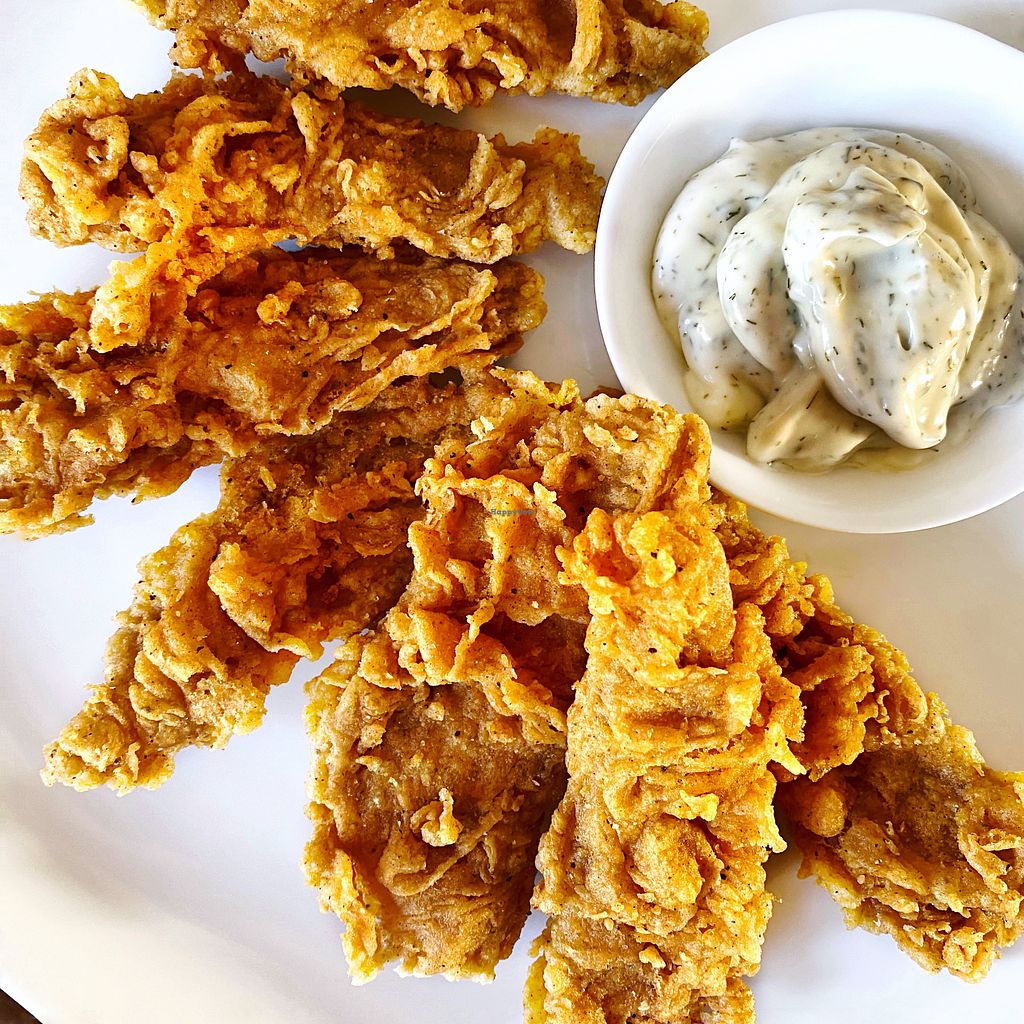 The fried batter here is so good and it stayed crispy for so long( maybe has corn meal in it?) the seitan was ok which the meat part had more texture. Waffle was very good tho.