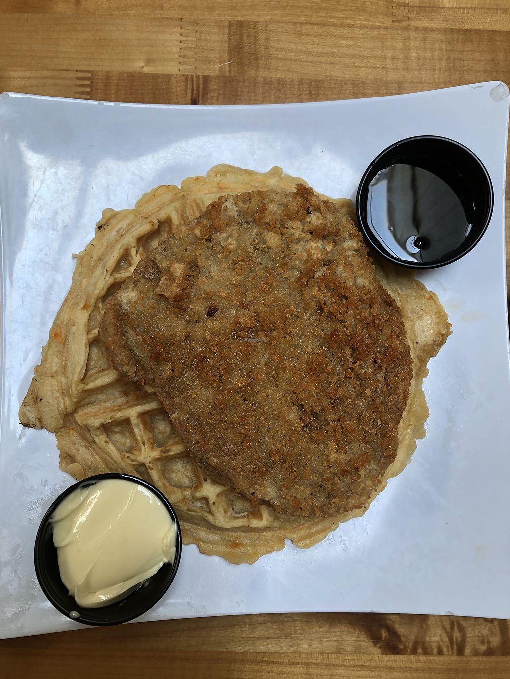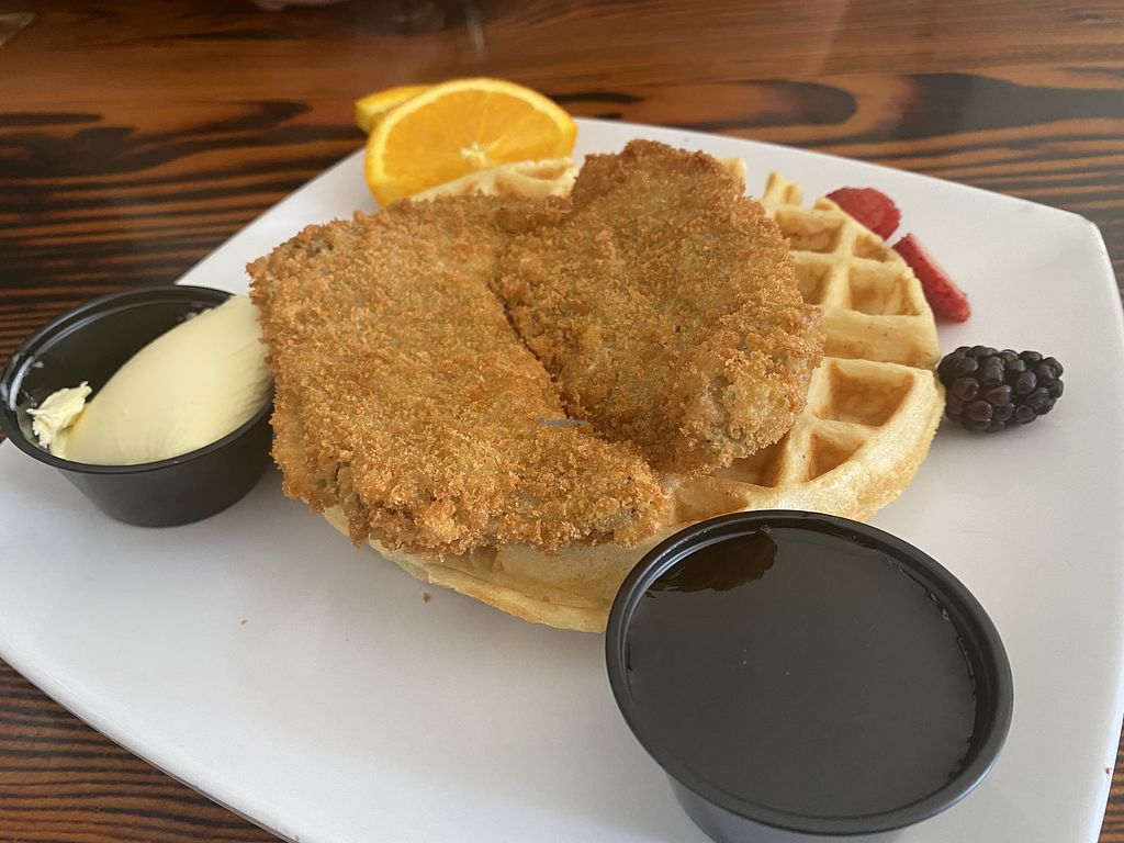 Chik’n & waffle with butter and syrup