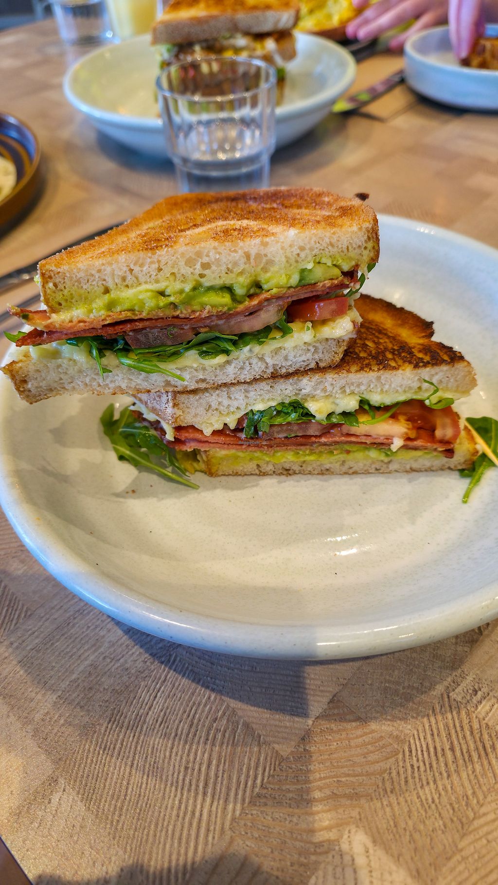 BRAT toasties - “bacon,” roquette, avocado and tomato - yum!