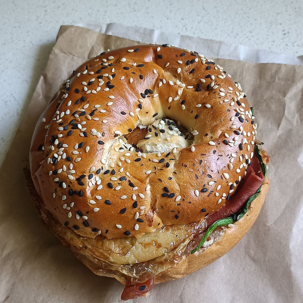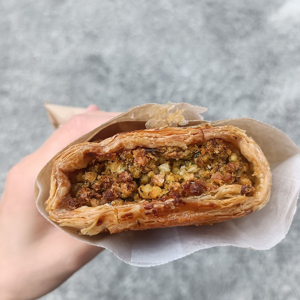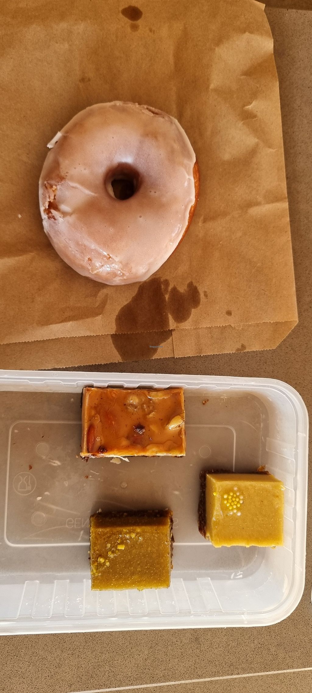 Glazed donut, peanut butter slice, pistachio and ginger slice, and pas…
