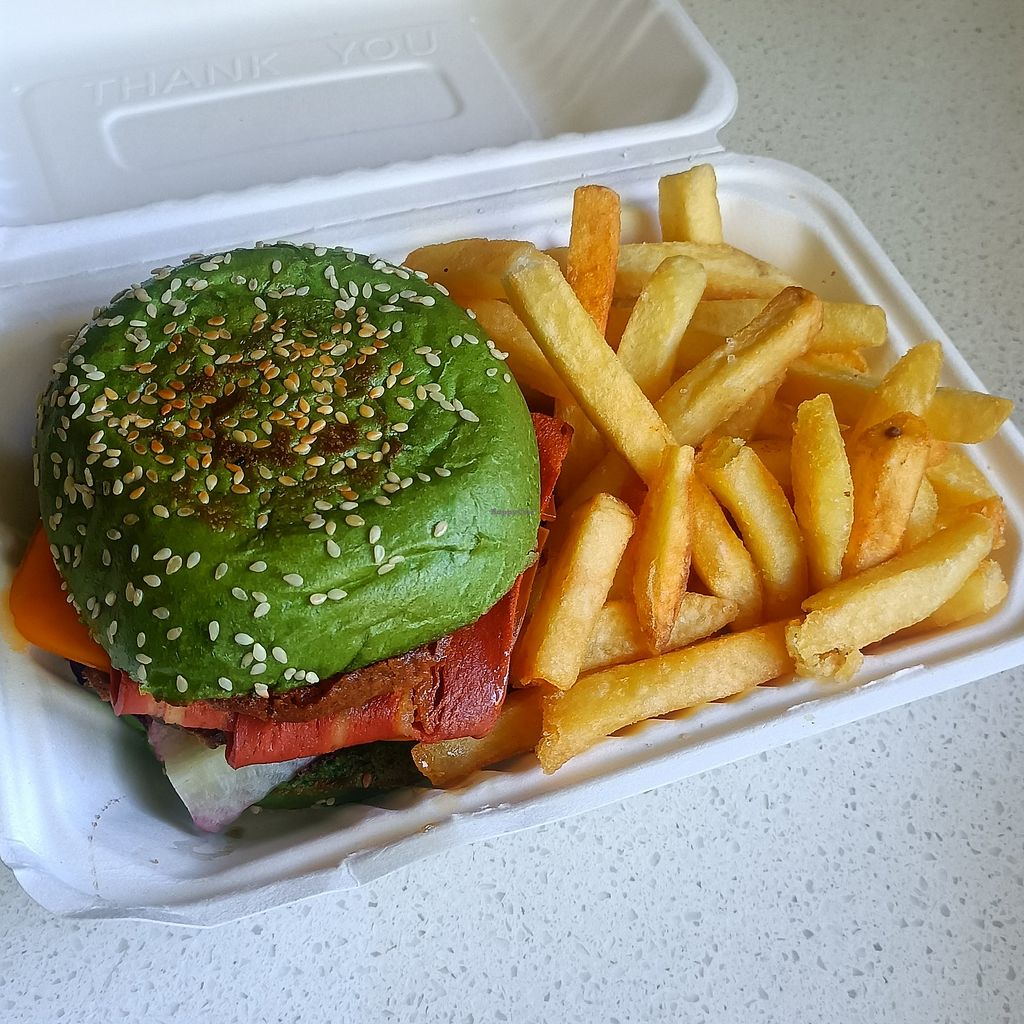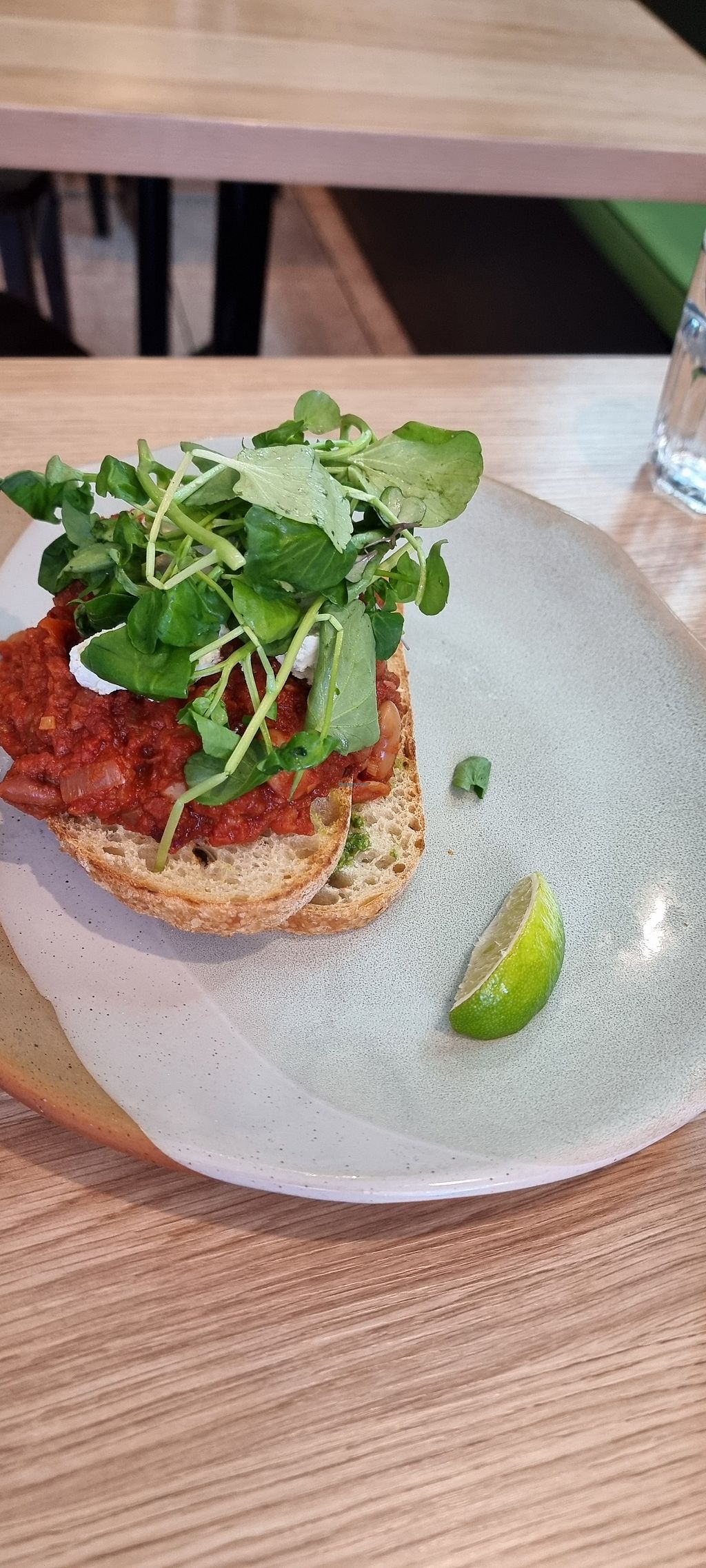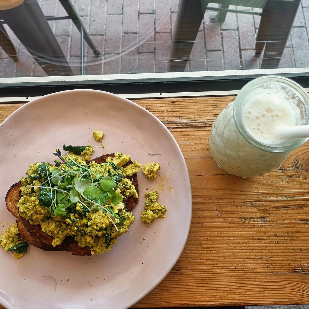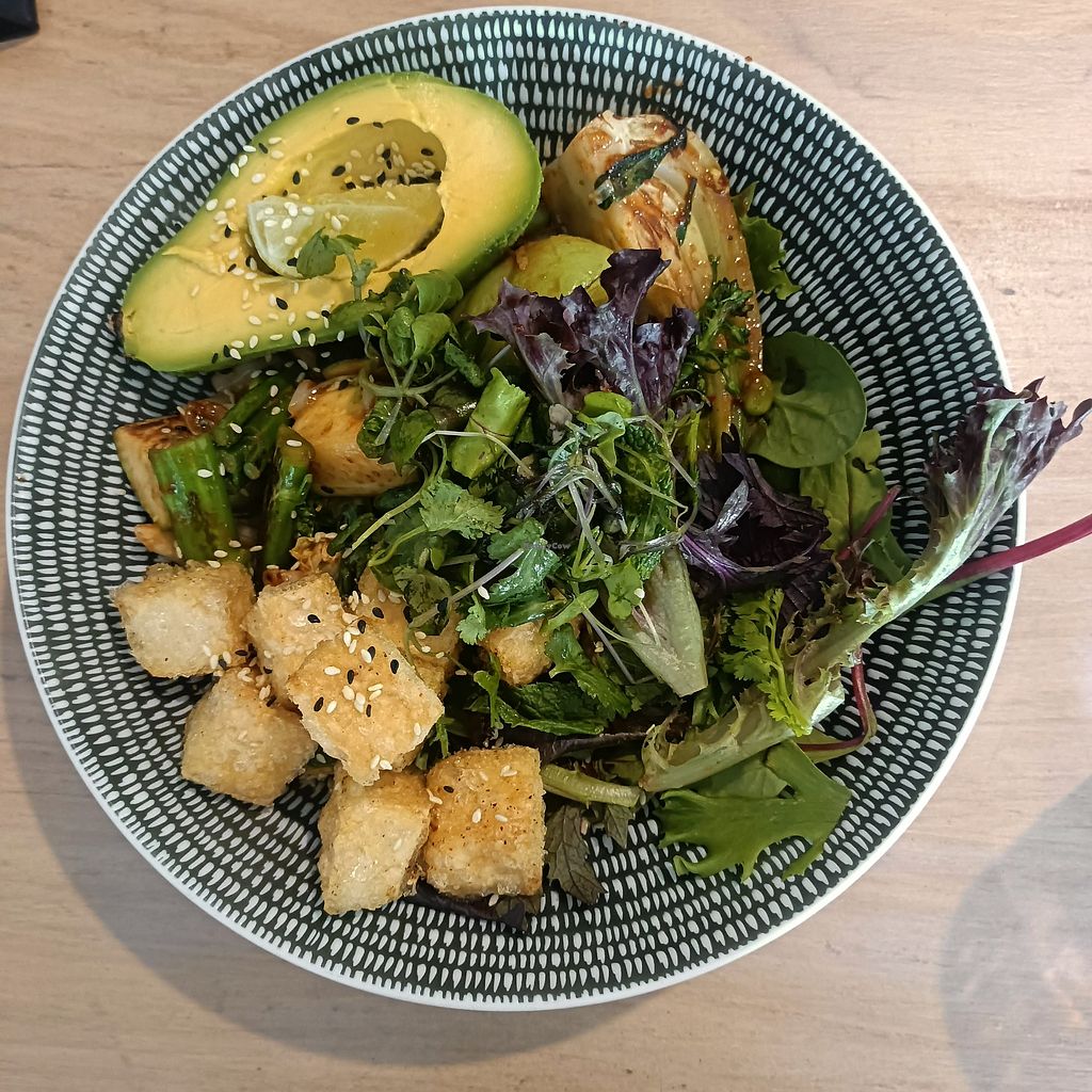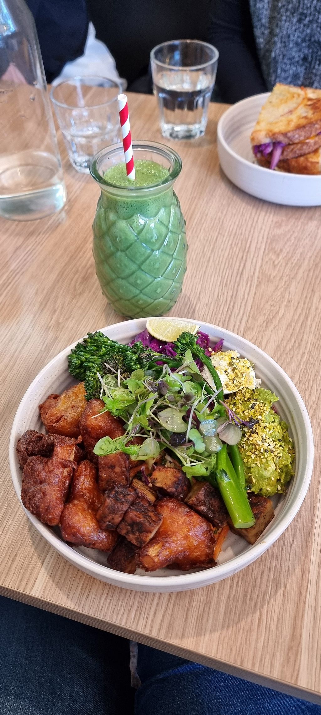 Spiced Cauliflower Fritters, with tempeh extra and Green Latifah smoot…