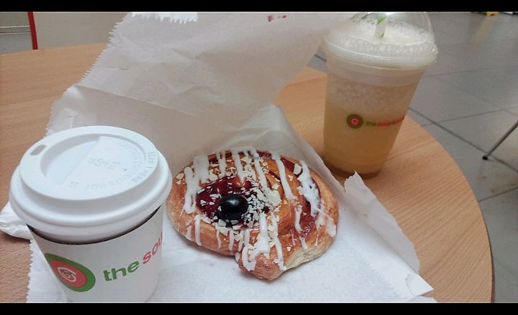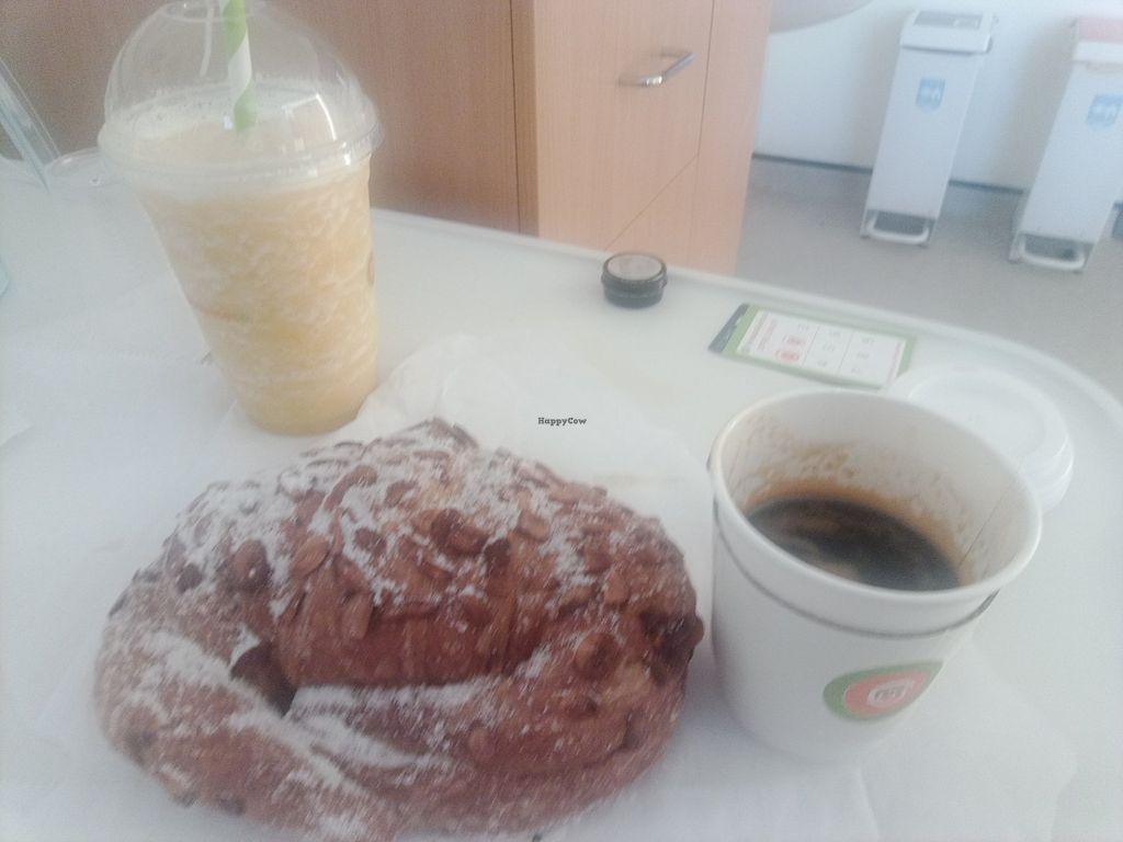 I ordered Espresso, ogling the mouth watering selection of delicious looking Cakes and Pastries thinking no way are they going to be Vegan, but too My surprise four were Yeha , so four shots of Espresso, pineapple smoothie no yogurt and a Cherry Cinnamon swirl 🍥 breakfast sorted 😋