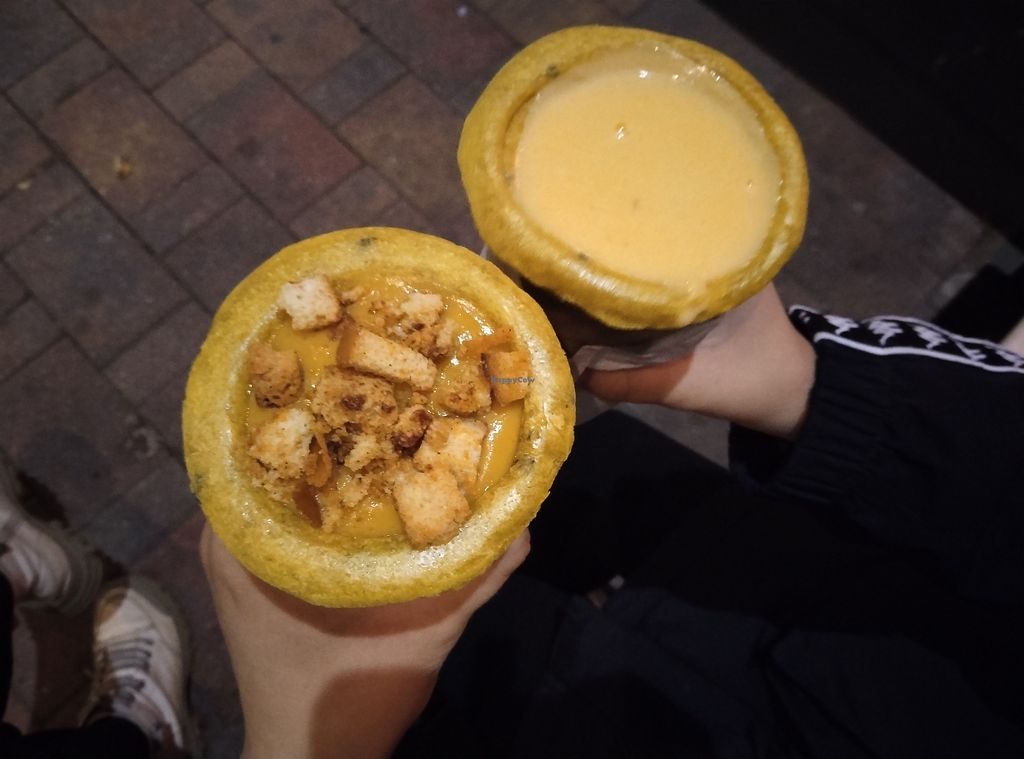 Tiny little place with soups in an edible packaging. Only for take away. They have one vegan option per day, when I went that option was lentil soup. Fun experience and tasty soup. Love the concept