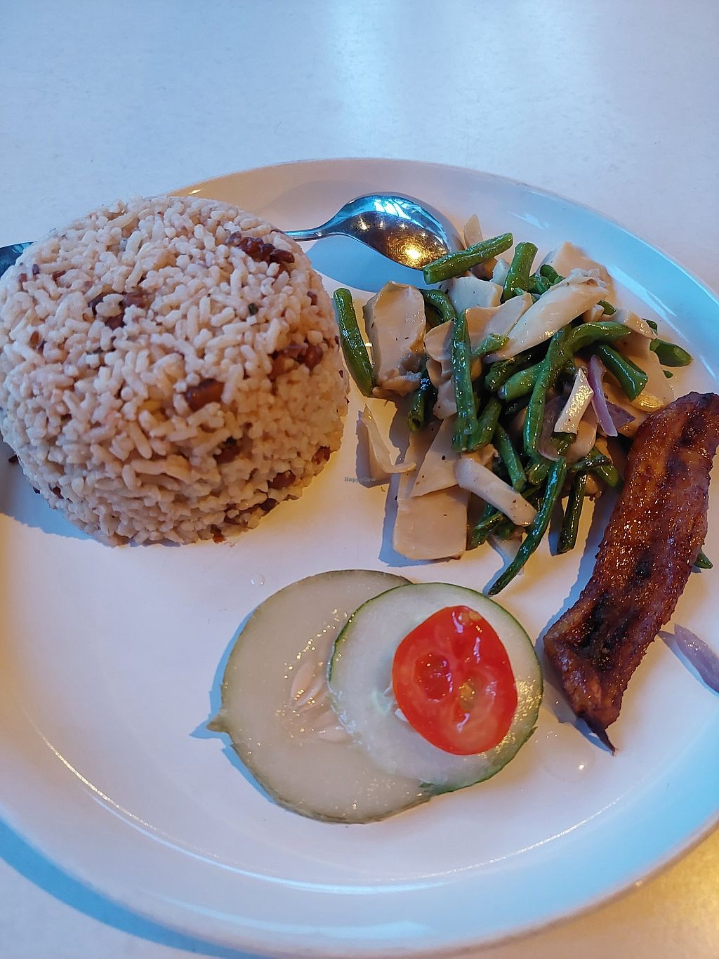 The only vegan meal available was "Mixed Rice" which was just dry rice and beans without flavour for 300 SRD. Luckily the side mushrooms and greens were nice. Had to wait for one hour. Nice staff team and very pretty setting. Tourist trap?
