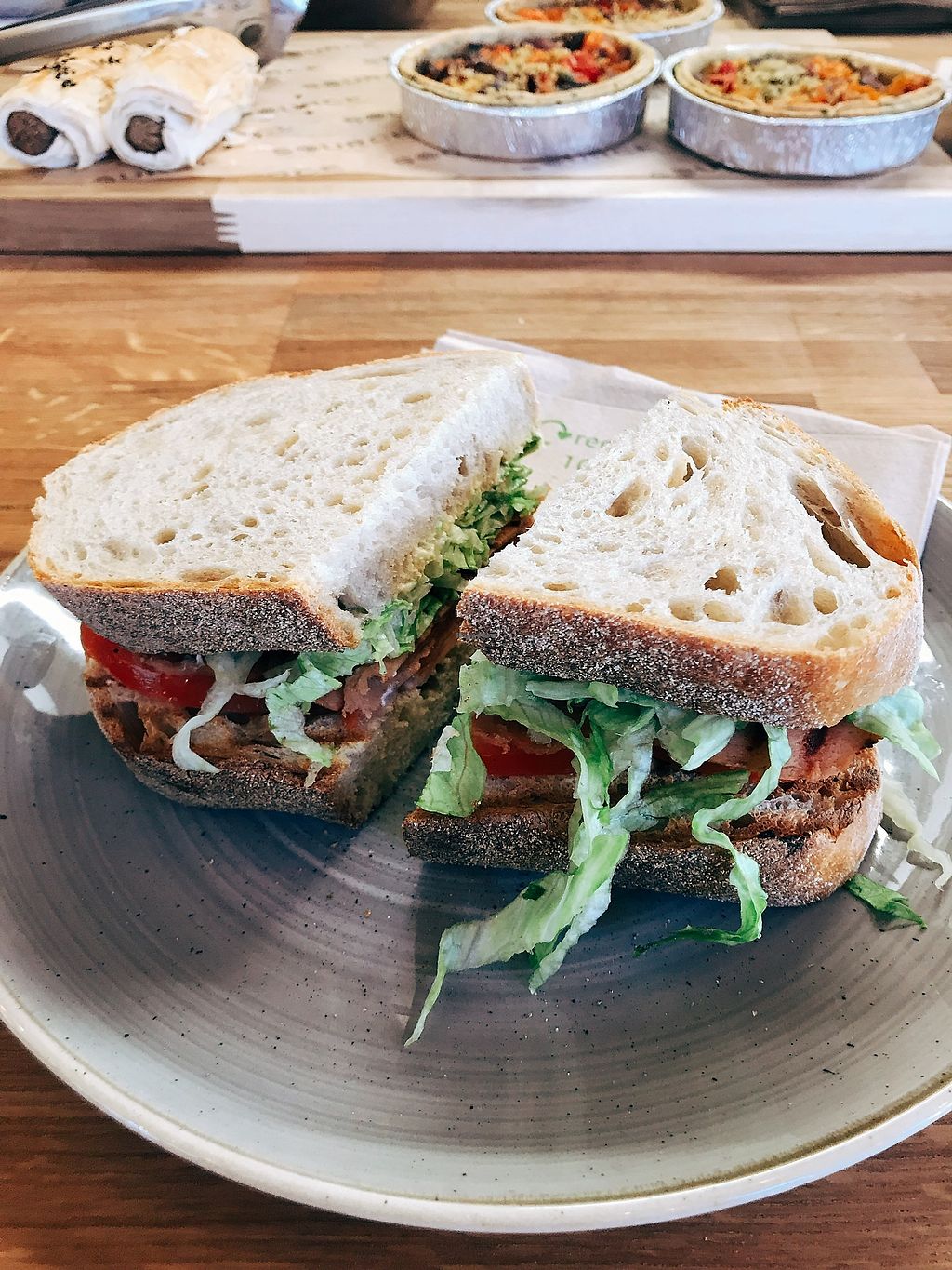 A great deli with lovely staff and good food. Plenty of good vegan options including desserts. I would say the one to try first is the vegan chicken. Also the sausage rolls and flans are great. After a refurb there is now more seating available. Good Central location on the market corner. Lovely pleasant staff.