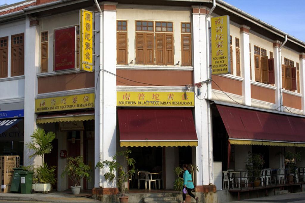 Rice, mock fish, mock meat, fried tofu, chillies, mushrooms, etc.