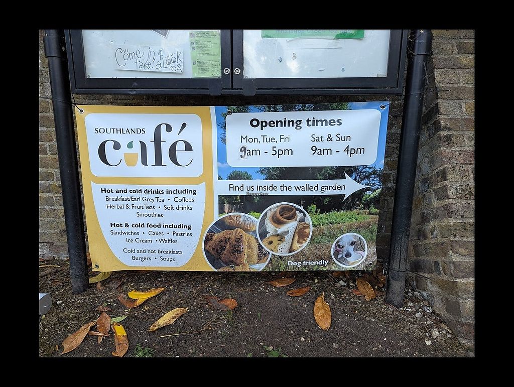 The Southlands cafe is now open every day Friday - Tuesday, which is great news! Everything is vegan, though they do also offer dairy milk for hot drinks and cold coffees. The revamped menu has a good variety of panini's, sandwiches, soups, croissants, salads and breakfasts, plus drinks and delicious cakes at reasonable prices. The cafe is set in a beautiful historic walled garden and the inside has had a facelift and now has comfy sofas, so it really is a lovely place to be.