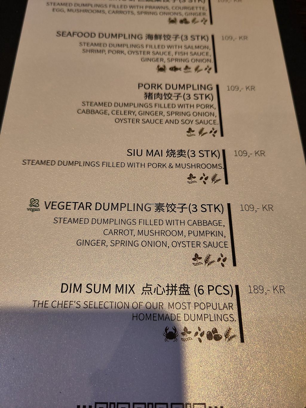A must try spot in Bergen. They have clearly labeled vegan items on the menu, and the 3 we got were fantastic. All other allergens (soy, wheat, etc.) are clearly labeled.