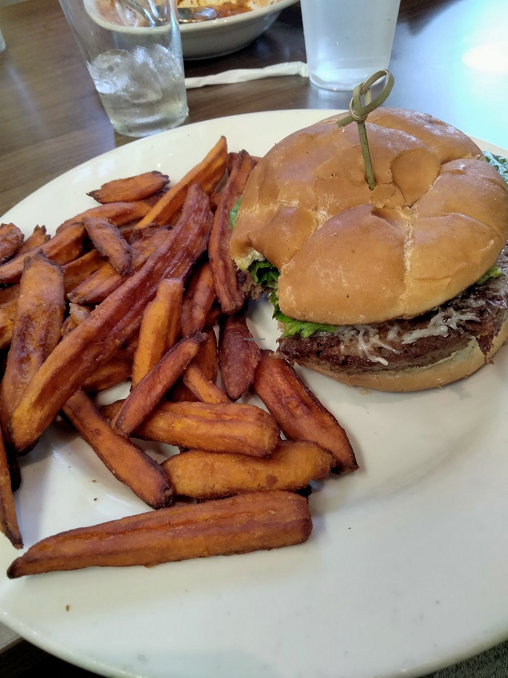 Great service, Impossible California burger, no cheese! Sweet potato fries were fire.
