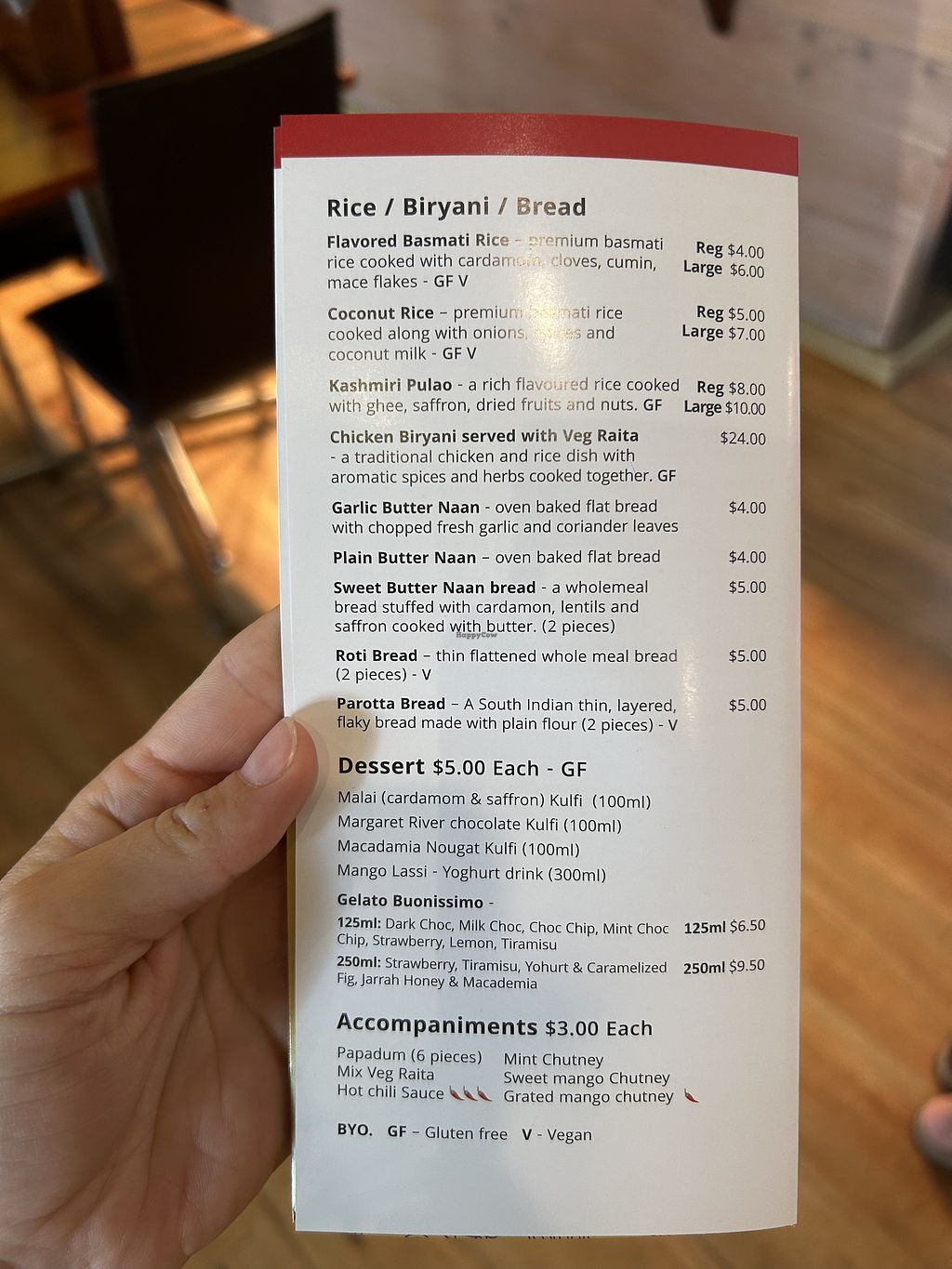 Super tasty Indian food. We were blown away! I had the vegan Okra Masala with rice. Absolutely delicious. Highly recommend! Cute hidden restaurant as well. We had take-away. Not the best take-away tupperware though.