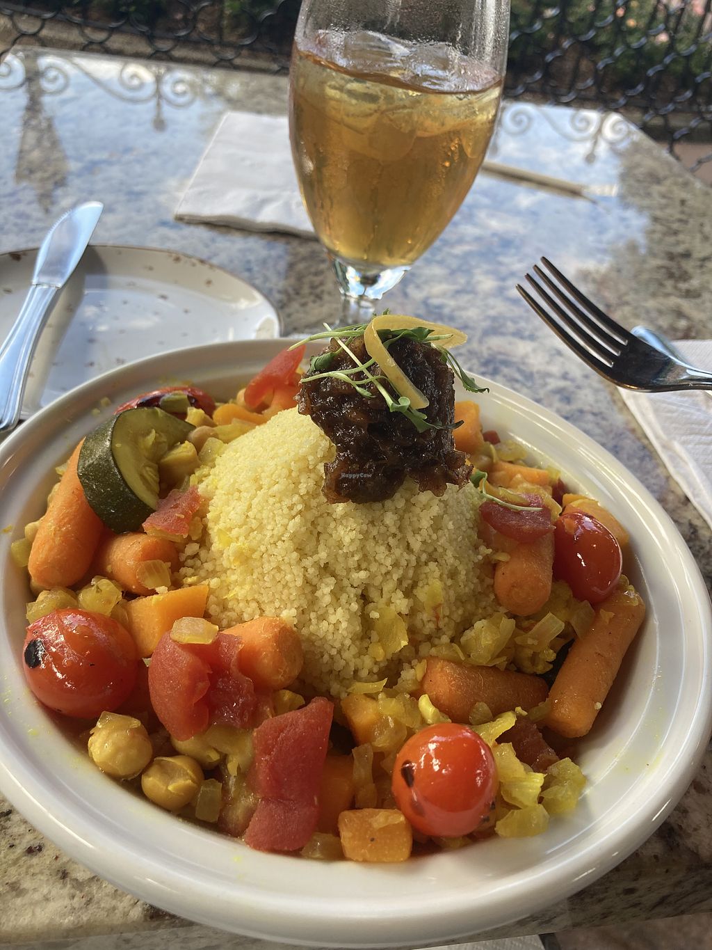 Serves meat, vegan options available. Outdoor small plates restaurant in EPCOT. Offers several vegan dishes such as crispy cauliflower, hummus fries, dolmas, and spreads with a vegan alternative to naan. Specify vegan when ordering. Open Mon-Sun 11:30am-9:00pm.