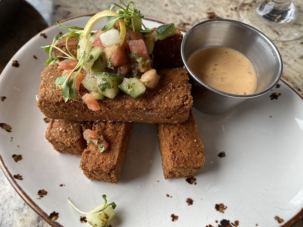 We loved the hummus fries- the sauce they come with is amazing! The cauliflower with pomegranate chili sauce was raved by our teens to be one of the best dishes they've ever had. We also got the bread plate- it says vegetarian, but they made it vegan for us and it was delicious! We inhaled our food it was so good.