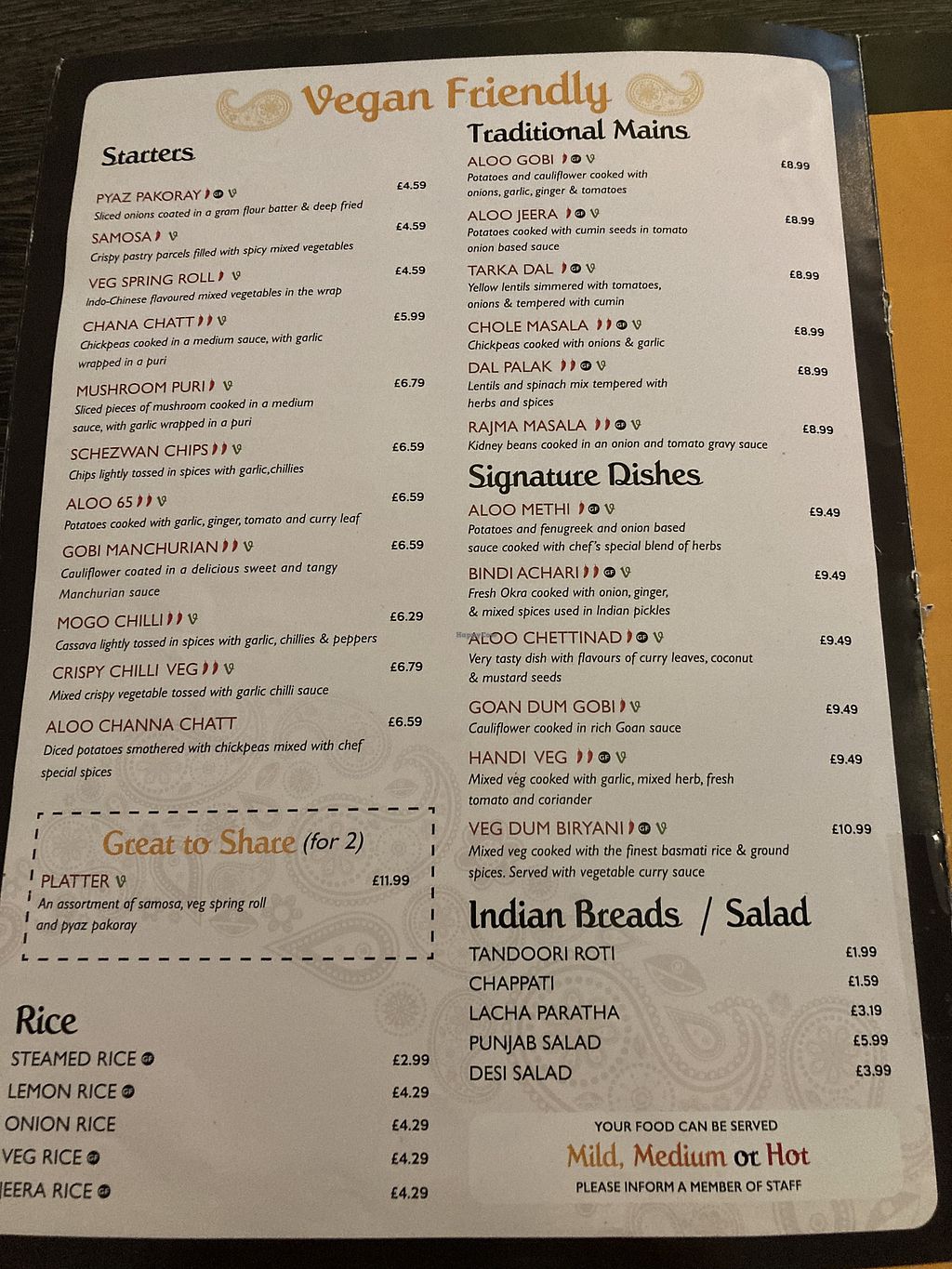 Read moreI chose the 'Great to Share' starter platter. This came with samosa, spring roll and pyaz pakoray. The pyaz pakoray was lovely, like an onion bhaji really. Sadly the spring rolls were cold in the middle. The platter was £11.99 and you only got 2 of each and so 6 items in total. I did expect it to be more than this though.