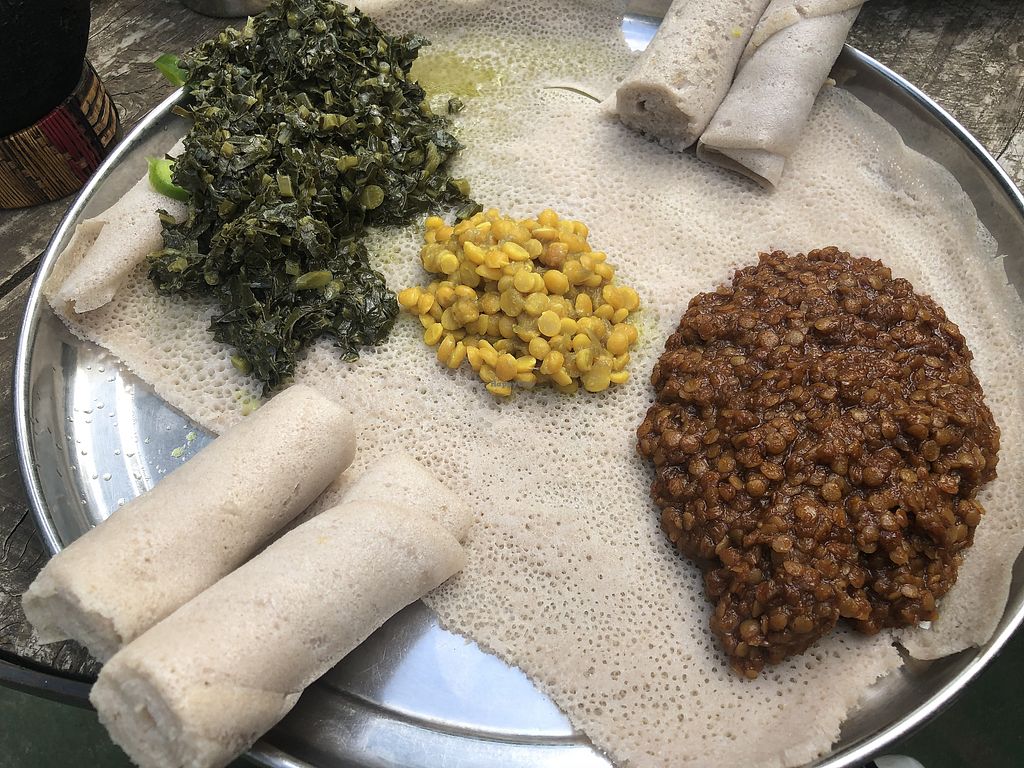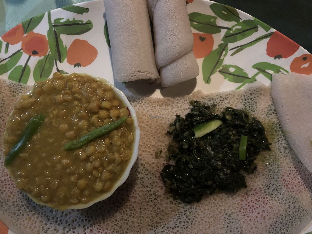 Lentil dish and a kale stew with injera