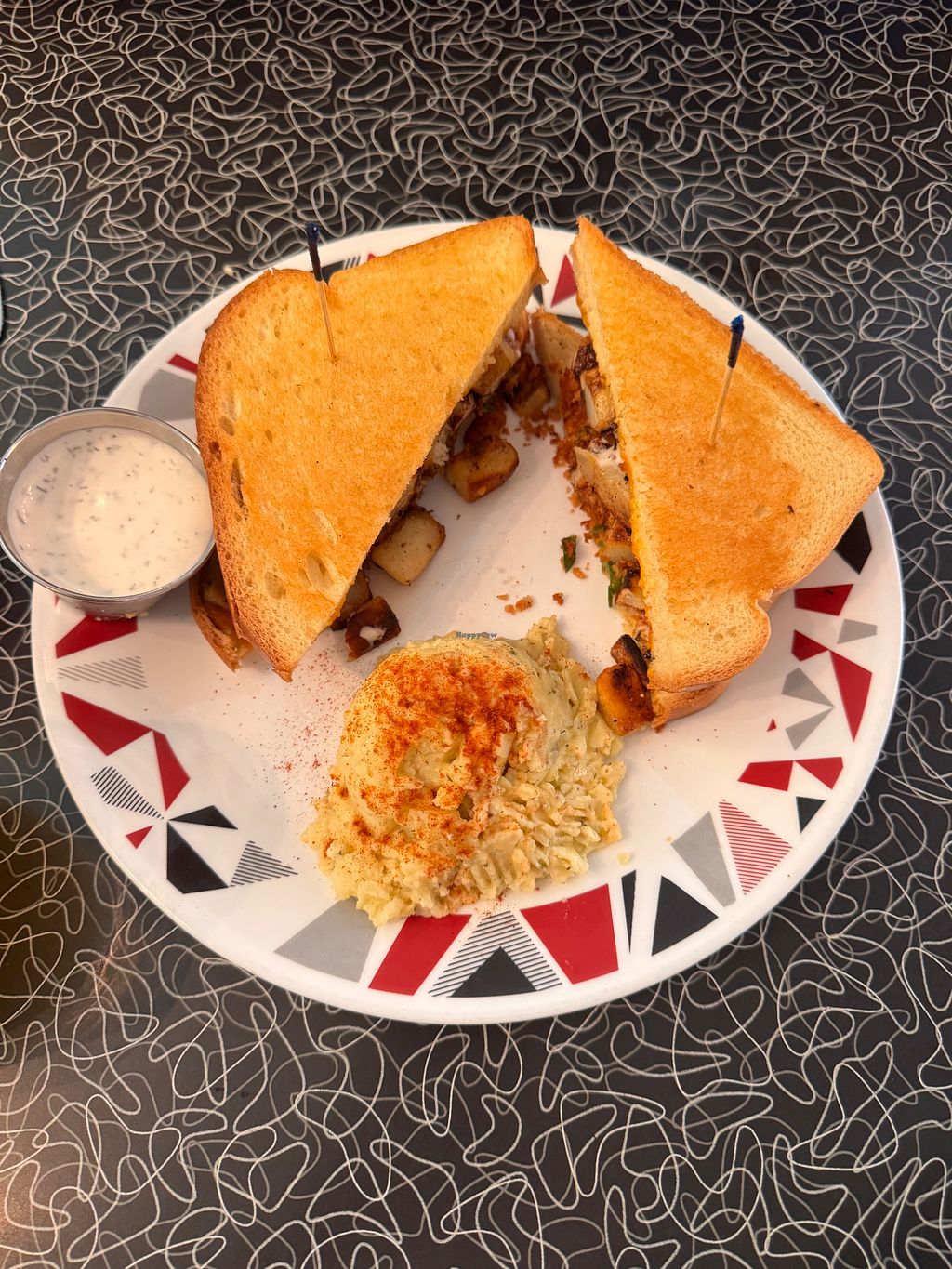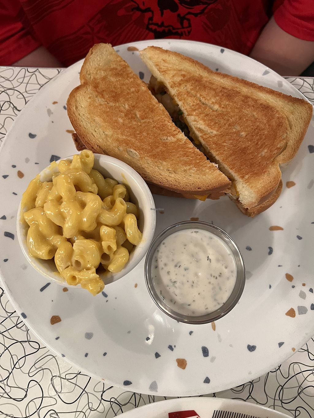 Baked potato grilled cheese sandwich with a side of Mac & cheese. This…