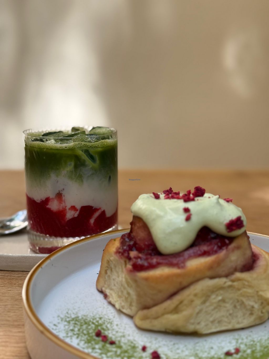 Another all vegan visit in Innsbruck for a Matcha and a delicious spiral pistachio frosted roll. It was pleasantly crowded with a nice vibe.