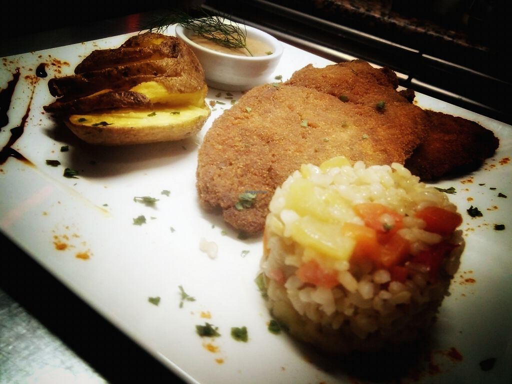 Wir hatten das Seitan-Filet und die mit veganem Mozzarella überbackene Avocado. Sehr lecker.