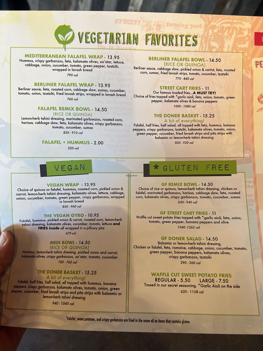 Serves meat, vegan options available. Small chain of Greek-Mediterranean street food restaurants that offer grain bowls, wraps, and salads which all have vegan versions and is listed on its website. Known for the fries. Check for vegan-friendly beer and wine. Open Mon-Sun 11:00am-9:00pm.