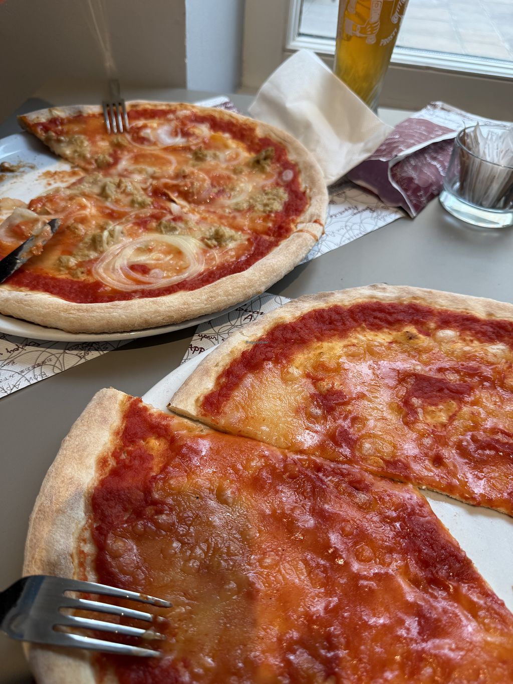 Es gibt hier 7 vegane Pizzen zur Auswahl. Die Pizzen sind ganz gut, das ganze Ambiente ist aber sehr „Schnellimbiss“-artig. Uns wurde hier auch die falsche (trotzdem vegane) Pizza gebracht - damit sie nicht weggeschmissen wird, haben wir sie trotzdem behalten.