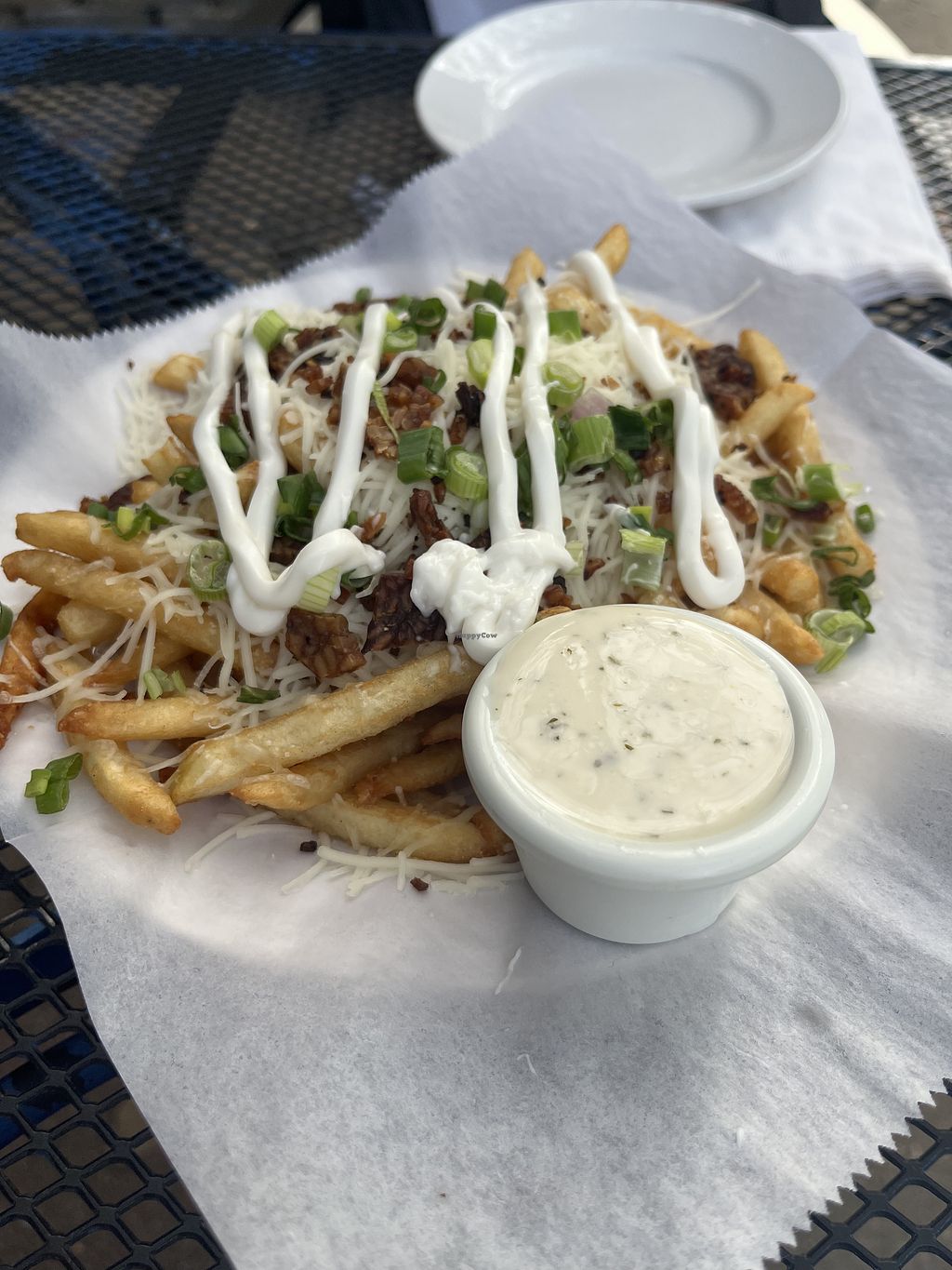 Fried okra, soy chunks & ranch, fried green tomatoes with vegan piment…